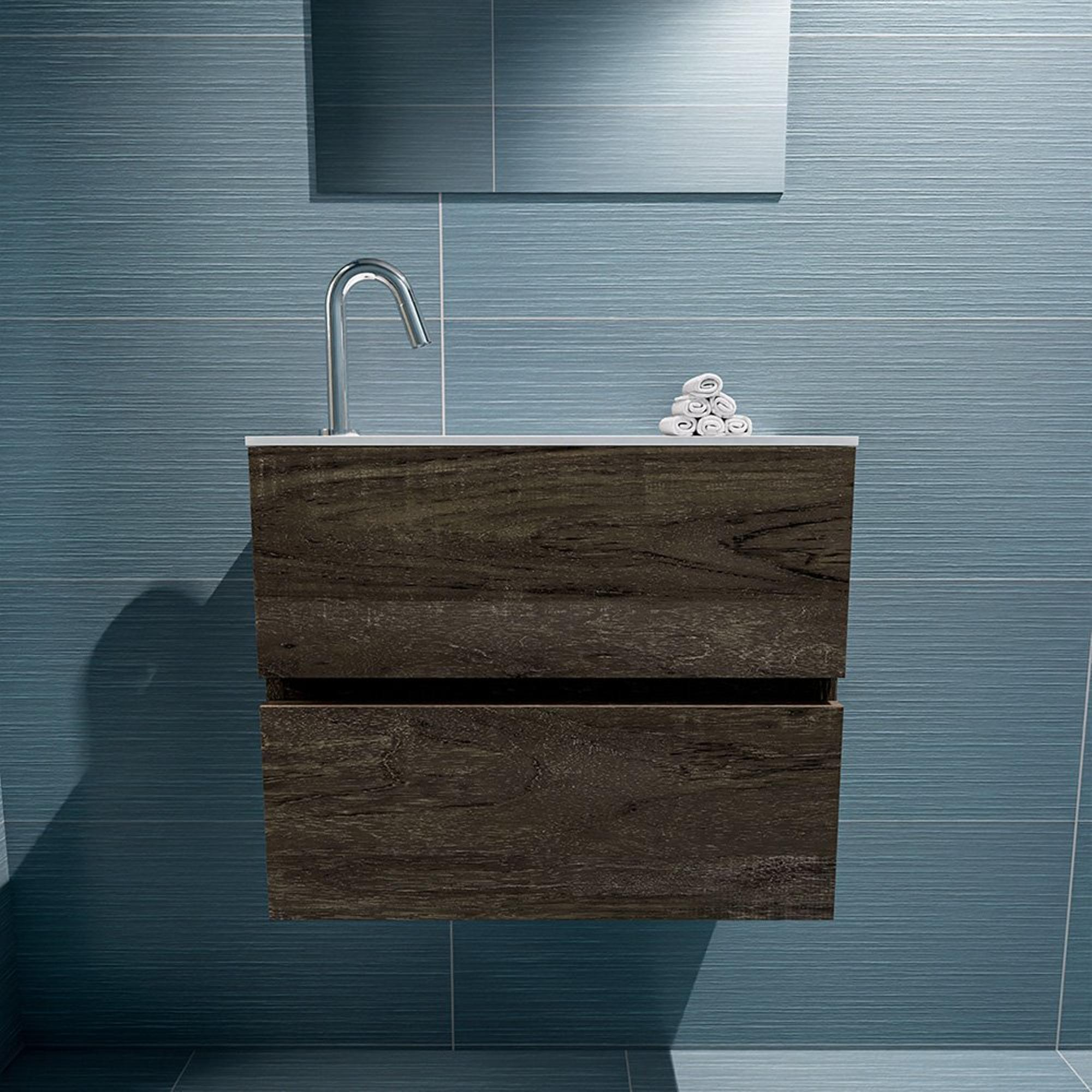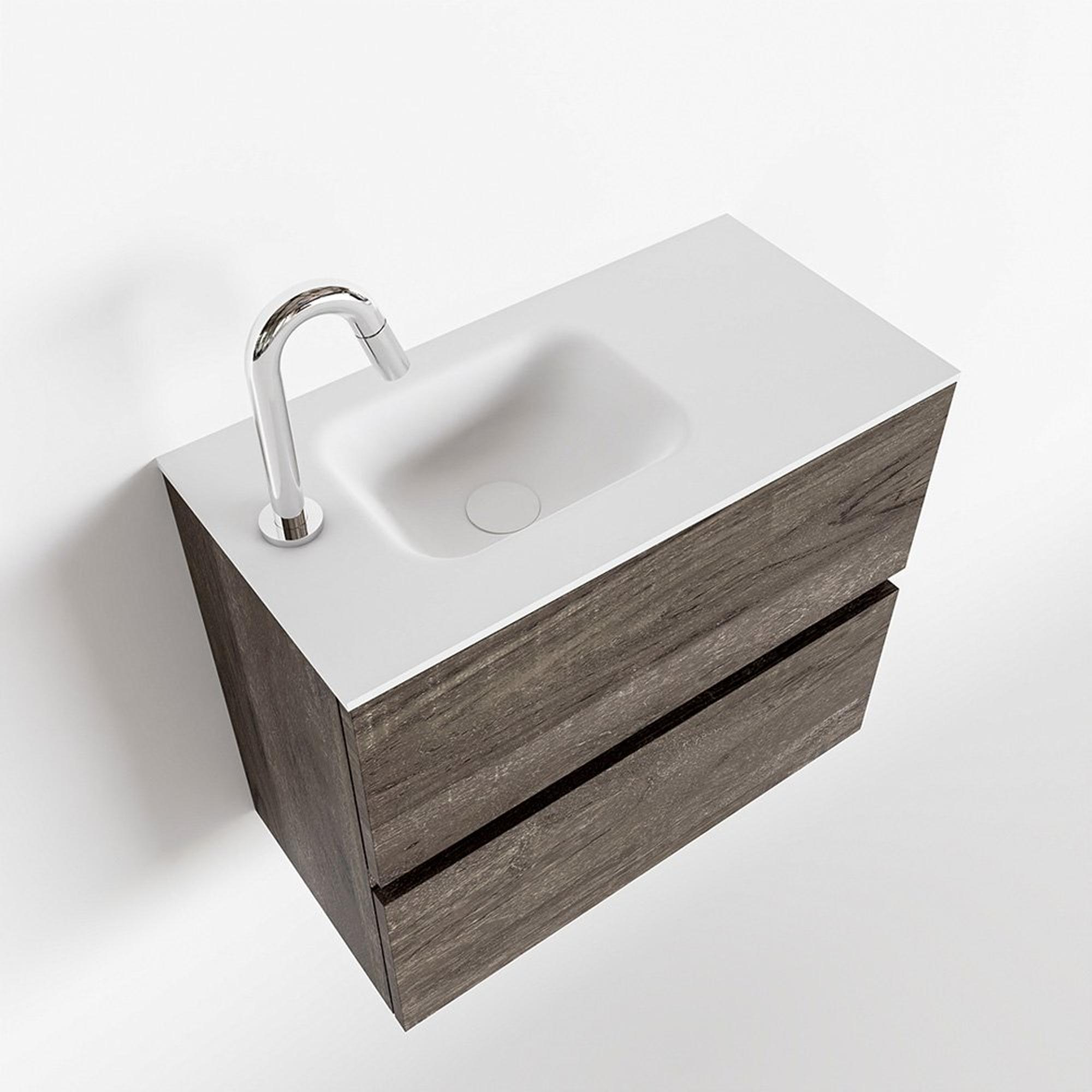 MONDIAZ ADA Meuble WC - 60x30x50cm - 1 trou de robinet - 2 tiroirs - dark brown mat - lavabo à gauche - Solid surface - Blanc