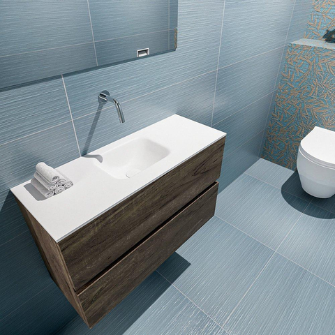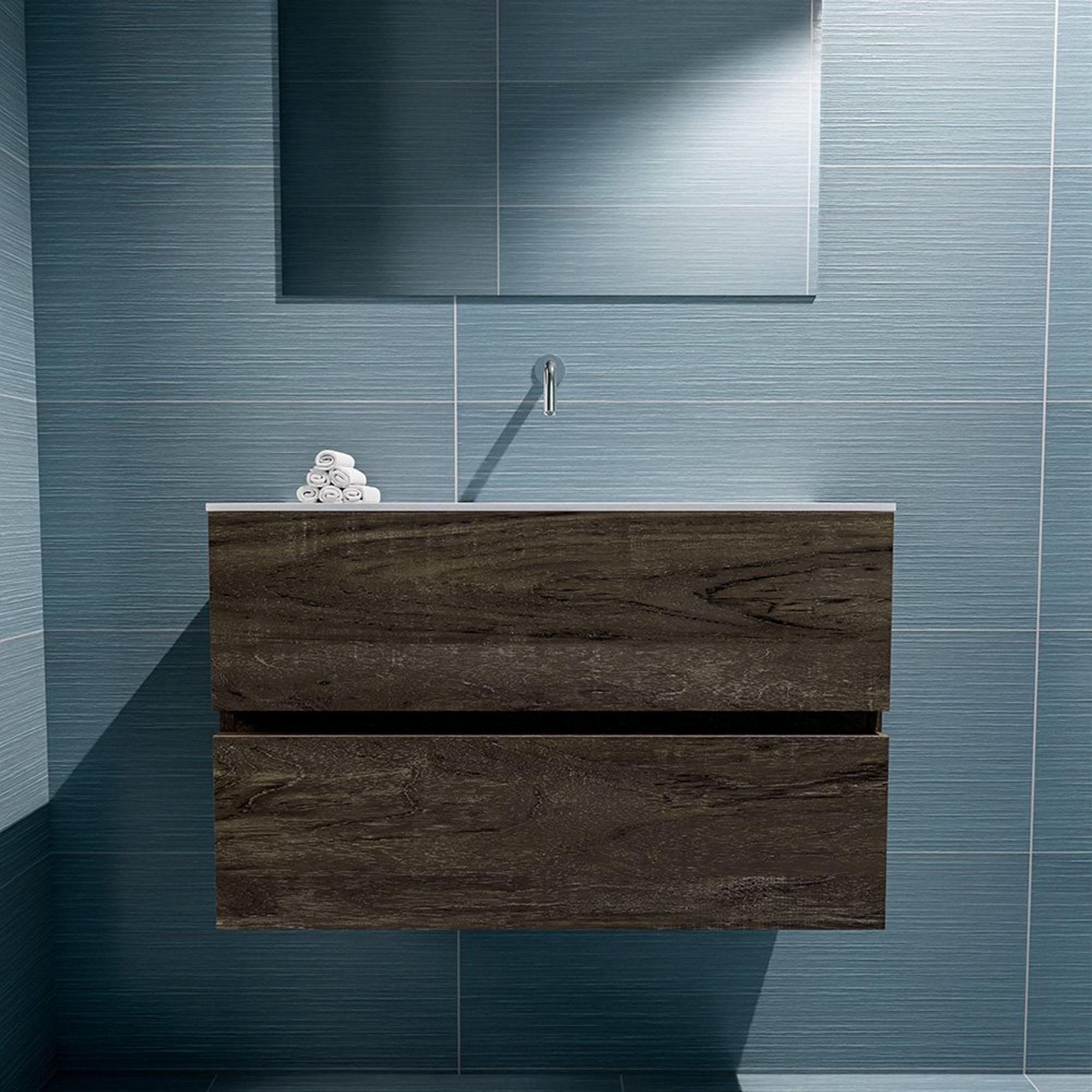 MONDIAZ ADA Meuble WC - 80x30x50cm - 0 trous de robinet - 2 tiroirs - dark brown mat - vasque au centre - Solid surface - Blanc