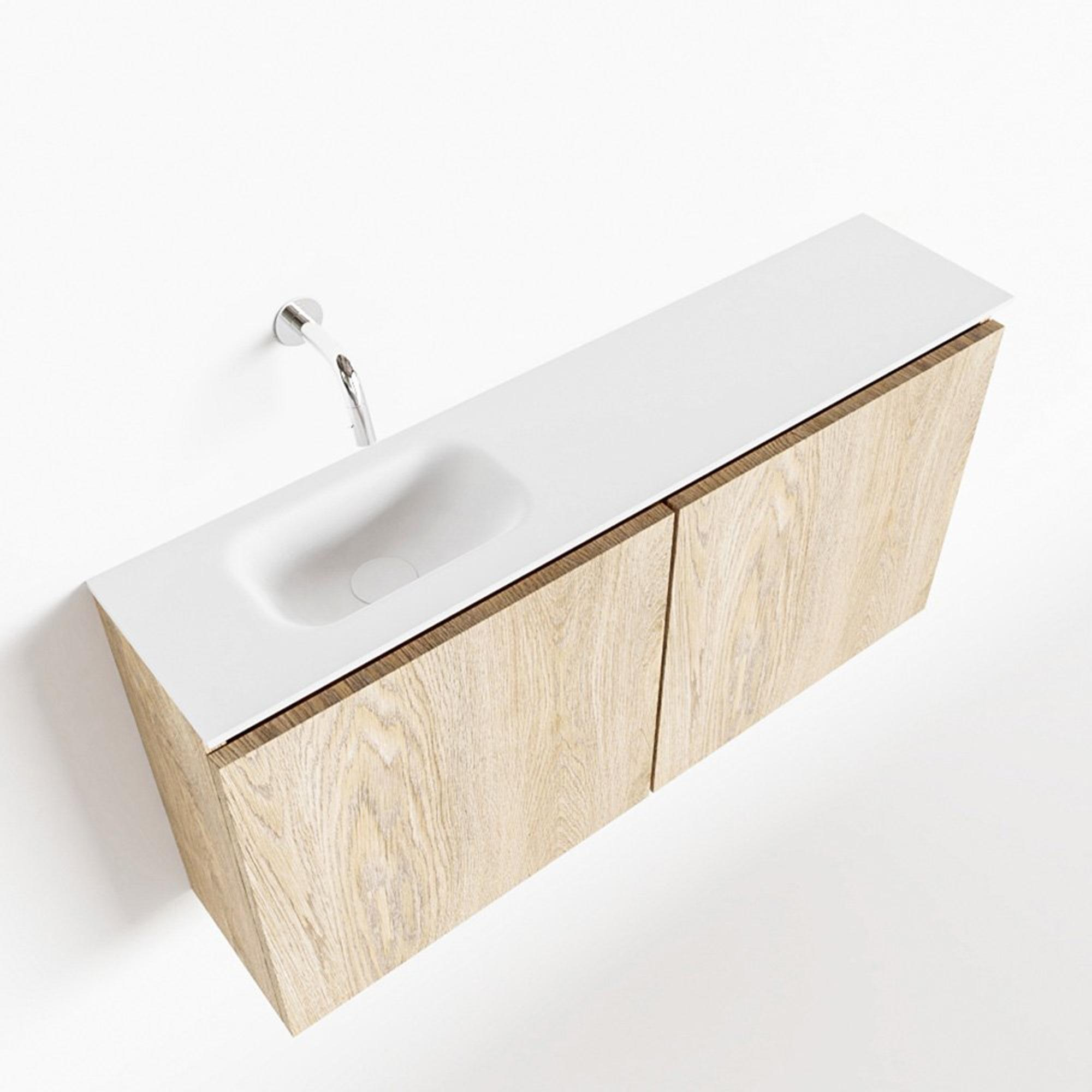 MONDIAZ TURE Kit lave-mains - 100x23x50cm - 0 trou de robinet - 2 portes - chêne blanchi mat - Lavabo à gauche - Solid Surface Blanc