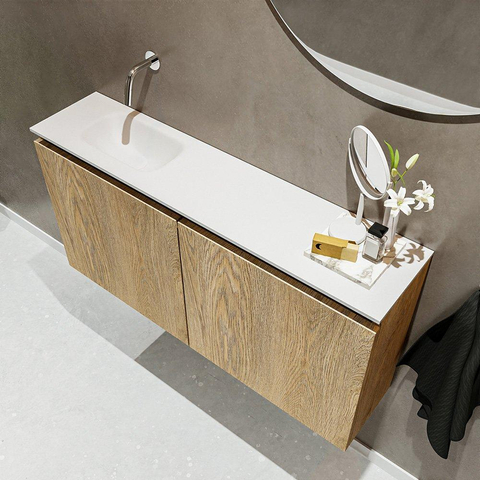 MONDIAZ TURE Kit lave-mains - 100x23x50cm - 0 trous de robinet - 2 portes - chêne blanchi mat - Lavabo à gauche - Solid Surface Blanc