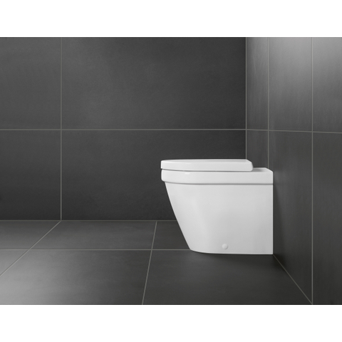 - Cuvette à poser à sortie profonde qui se place directement contre le mur pour une apparence ordonnée