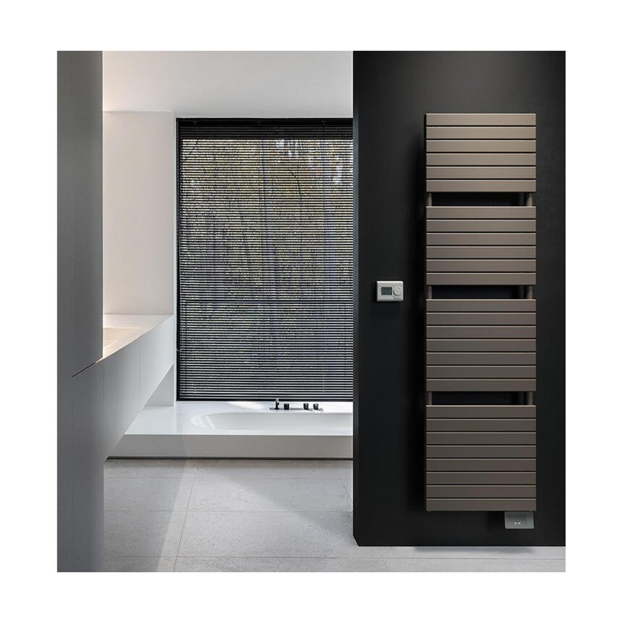 Le radiateur électrique Vasco Aster est une solution de chauffage élégante et efficace qui s'intègre parfaitement dans un intérieur moderne. Avec une puissance de 500 watts et un design épuré en jet black (RAL 9005), ce radiateur offre non seulement de la chaleur, mais aussi une apparence luxueuse.Design moderne et fonctionnel L'Aster est conçu avec des tubes plats ovales horizontaux (57,5 x 10 mm) et des collecteurs ronds verticaux (Ø 35 mm). Cette combinaison assure un aspect épuré et minimaliste. Le radiateur comporte des découpes pratiques pour le réchauffement des serviettes, idéal pour une utilisation dans les salles de bains ou autres pièces où le confort est important.