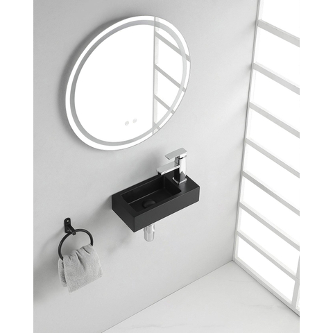 Les dimensions de 36,5 x 18 x 9 cm rendent cette vasque particulièrement adaptée aux endroits étroits ou restreints. Vous bénéficiez d’un lavabo fonctionnel qui ne prend pas beaucoup de place, tout en offrant un confort d’utilisation suffisant. Cela en fait un excellent choix par exemple pour des toilettes invités ou une petite salle de bains où vous souhaitez optimiser la surface. Avec le trou de robinet placé à droite, il s’adapte parfaitement à l’agencement de votre espace et peut être facilement combiné avec un robinet de votre choix.