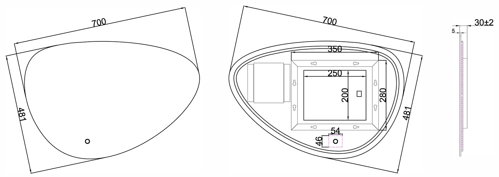 - Dimensions : 70 cm de large, environ 48 cm de haut, 3 cm de profondeur – idéal pour divers formats de salle de bains