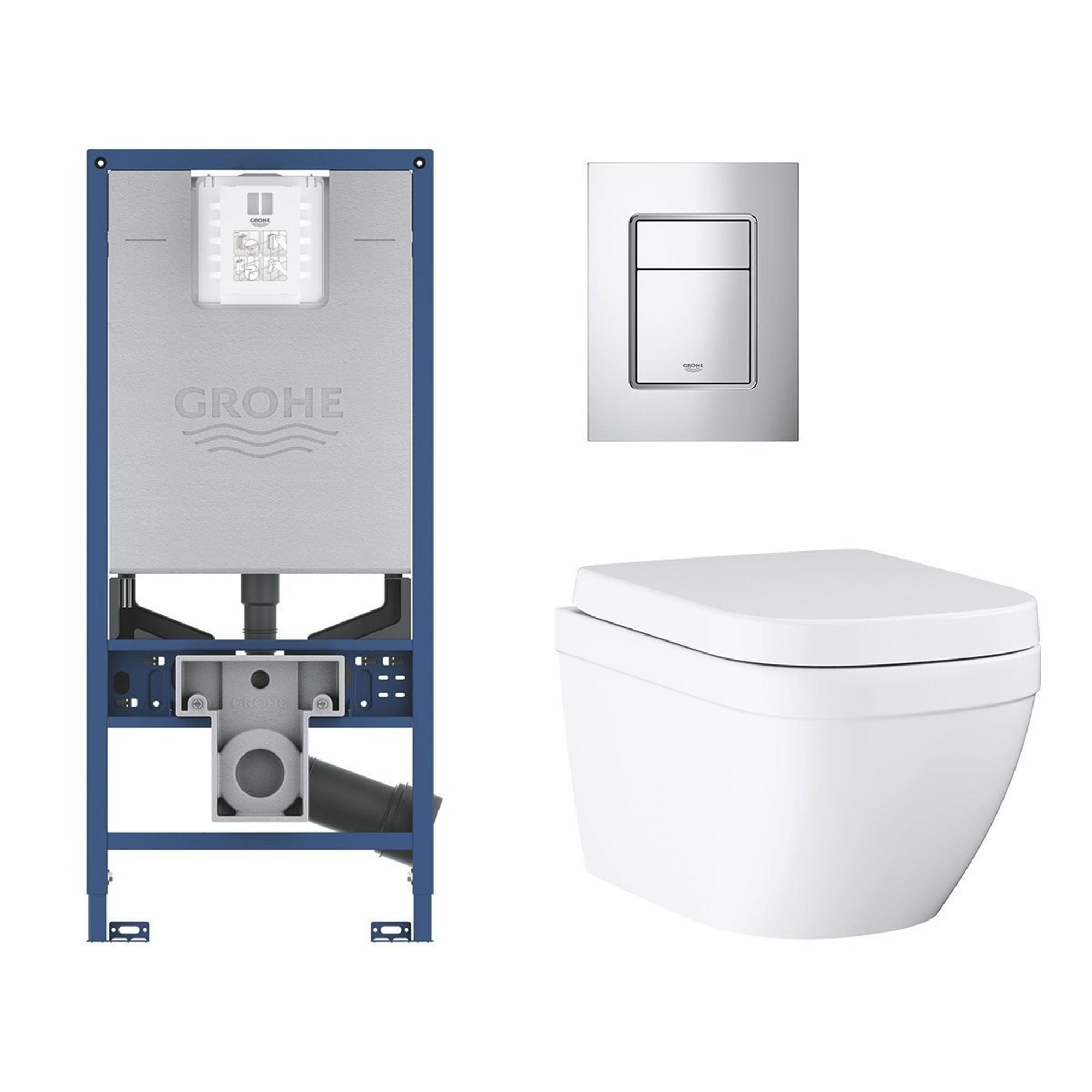 GROHE Rapid SLX pack WC avec réservoir à encastrer, cuvette suspendue en céramique avec petite plaque de commande chromée