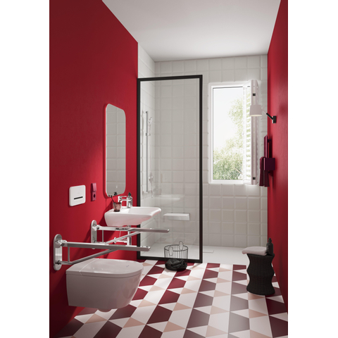L’un des plus grands avantages est le design rabattable : lorsque vous n’avez pas besoin du siège, vous le repliez simplement vers le haut contre le mur. Vous conservez ainsi une douche presque aussi spacieuse que sans siège, idéal lorsque plusieurs personnes utilisent la salle de bains ou lorsque l’espace est limité. Les dimensions compactes ont été soigneusement choisies afin de vous offrir une surface d’assise suffisante sans gêner l’espace de passage dans la douche. Cela le rend particulièrement adapté aux salles de bains sans barrières et évolutives, où accessibilité, flexibilité et confort doivent aller de pair.