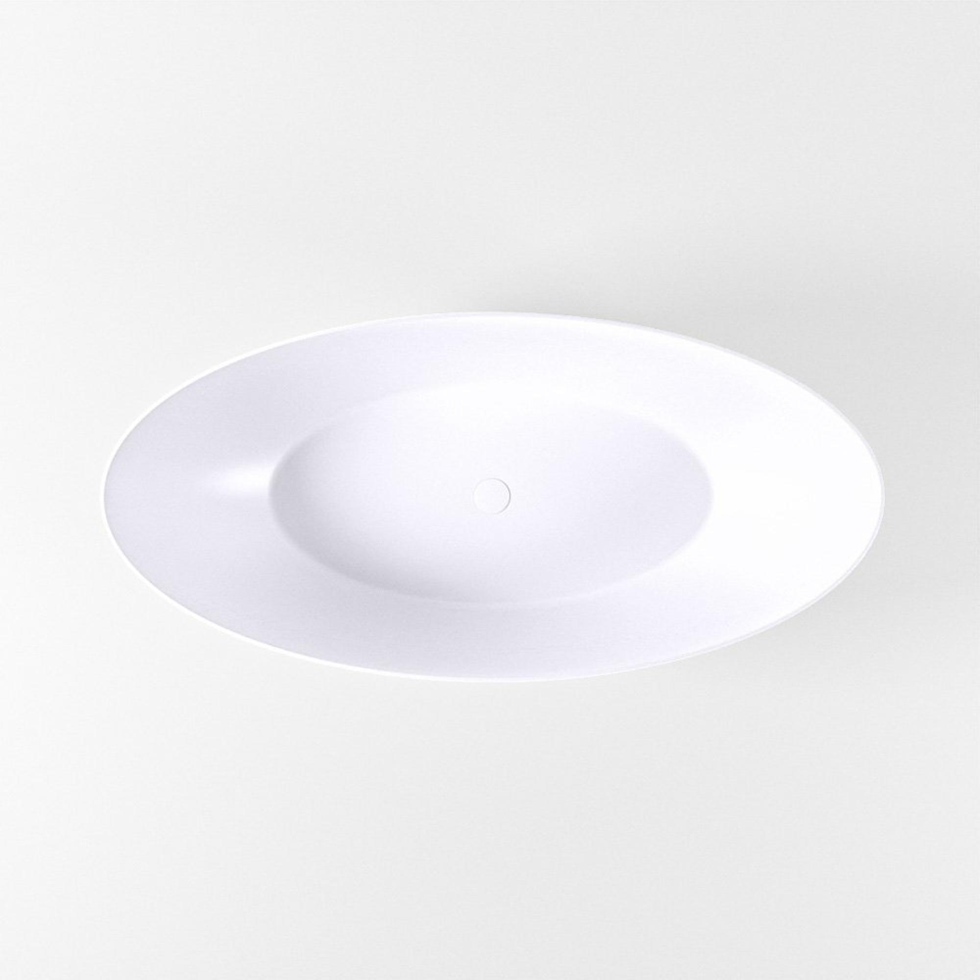 La forme ovale peut être placée librement, mais comme sur l'image, elle est également magnifique devant ou contre un mur. Cette superbe configuration de salle de bain est combinée avec le meuble de salle de bain ALAN et des niches en Solid Surface. Le lavabo et les meubles peuvent parfaitement s'accorder avec la baignoire. Vous pouvez choisir la couleur dans la salle de bain en toute tranquillité.
