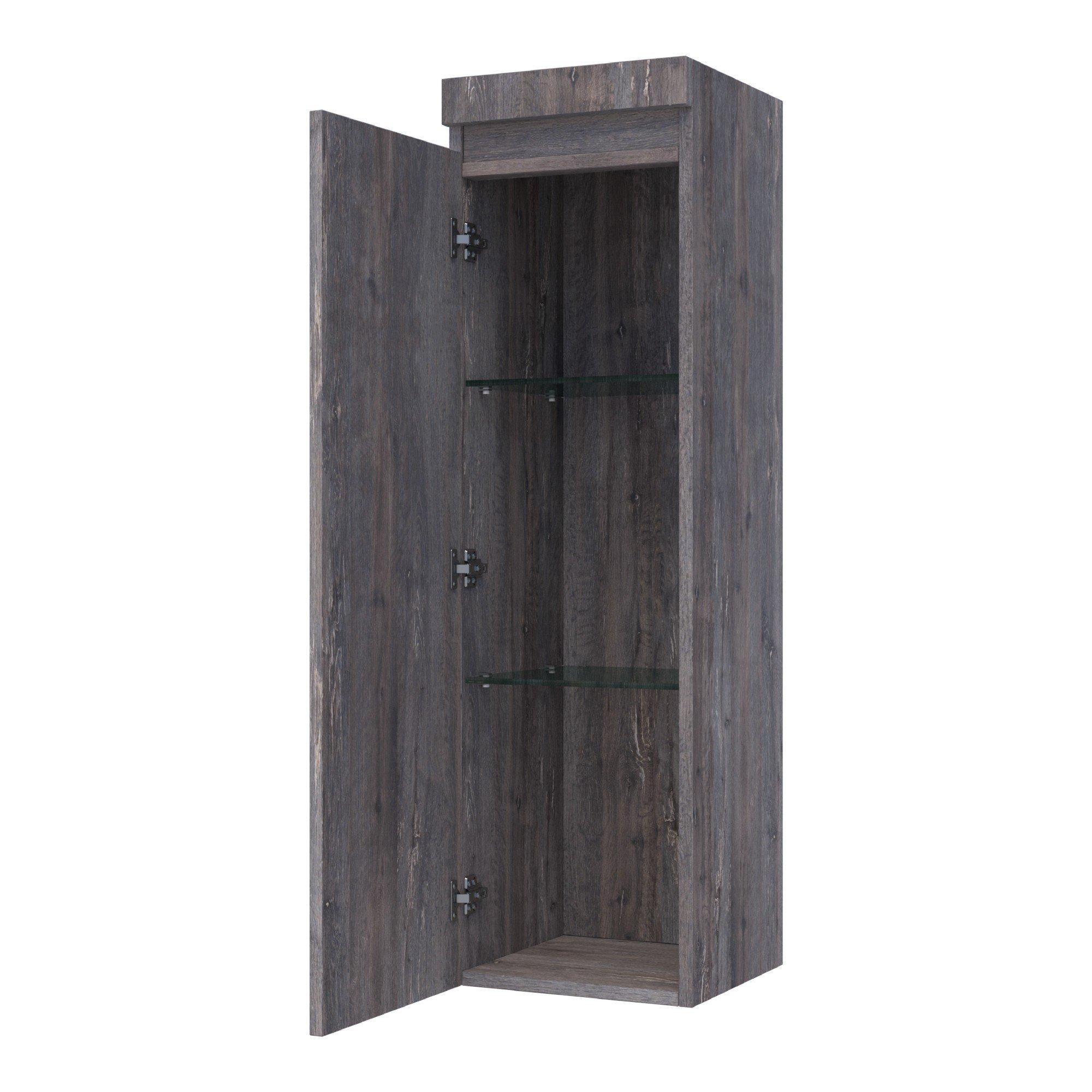 Avec cette armoire de salle de bains mi-haute, vous créez en une seule fois un espace de rangement supplémentaire et une apparence calme et ordonnée dans la salle de bains. Grâce au format compact de 120x35x35 cm, ce meuble convient très bien aux salles de bains moyennes et plus petites, mais aussi comme armoire supplémentaire à côté d'un meuble de salle de bains double dans une salle de bains familiale spacieuse. Le décor bois driftwood s'intègre parfaitement aux intérieurs modernes, scandinaves et naturels et se combine sans effort avec des carreaux blancs, aspect béton ou anthracite. Comme l'armoire est montée suspendue au mur, le sol reste dégagé et votre salle de bains paraît plus spacieuse et plus épurée. Cette version avec porte à charnières à gauche est idéale lorsque l'armoire est par exemple suspendue à côté d'un miroir ou d'une paroi de douche et que vous souhaitez ouvrir la porte vers l'espace libre. Vous ne faites ainsi pas seulement entrer chez vous un élément accrocheur et élégant, mais surtout un meuble de rangement pratique où les serviettes, les produits de soin et les produits de nettoyage sont rangés proprement hors de la vue.
