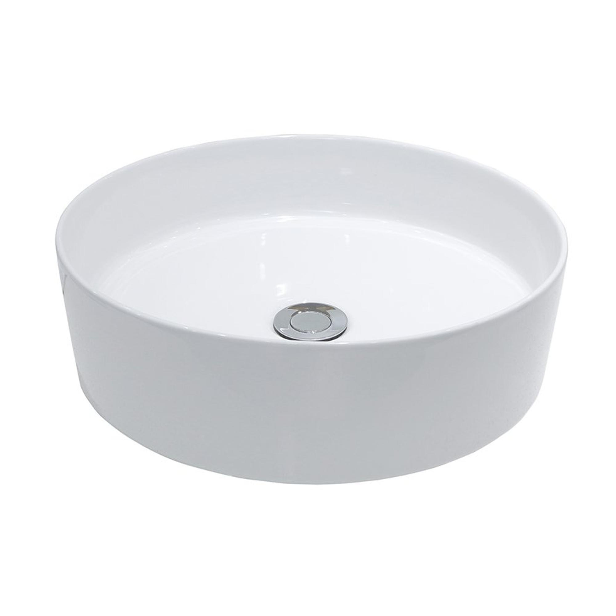 - Vasque à poser ronde avec un diamètre de 40 cm et une hauteur d’environ 12 cm