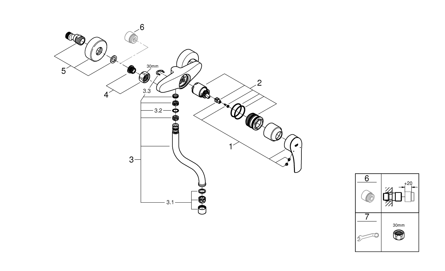 GROHE Eurosmart robinet de cuisine mural avec bec pivotant bas chromé