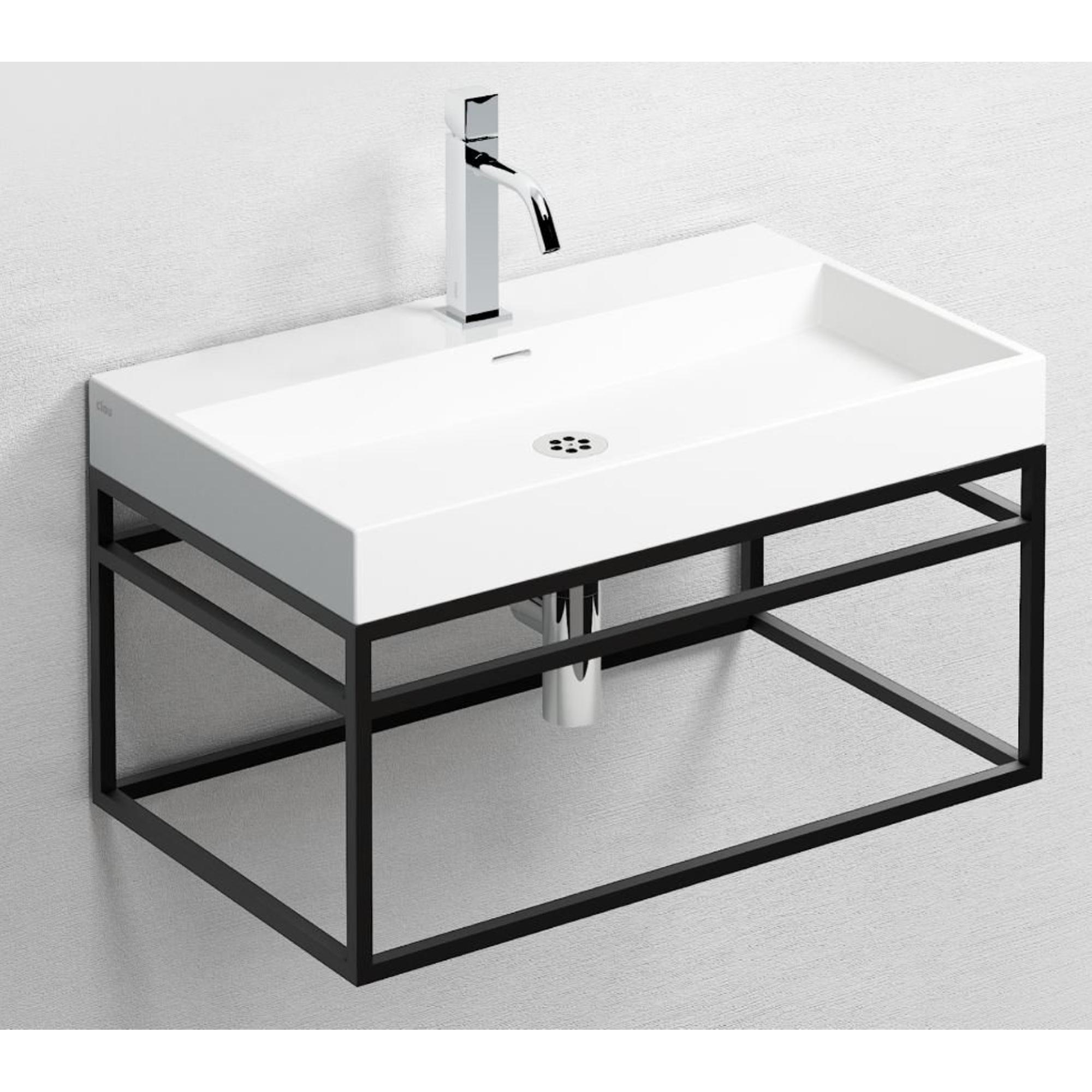 Clou Wash Me Ensemble meuble de salle de bains Frame 70x38x42cm Noir mat Lavabo céramique blanc brillant avec robinet Xo 12 bonde ouverte et siphon Chrome