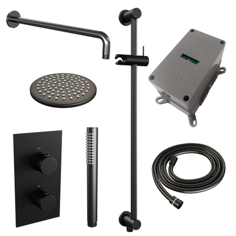 Brauer Black Edition 2 fonctions mitigeur thermostatique encastré avec inverseur partie encastrable 20cm douche principale bras mural courbé barre de douche douchette à main noir mat