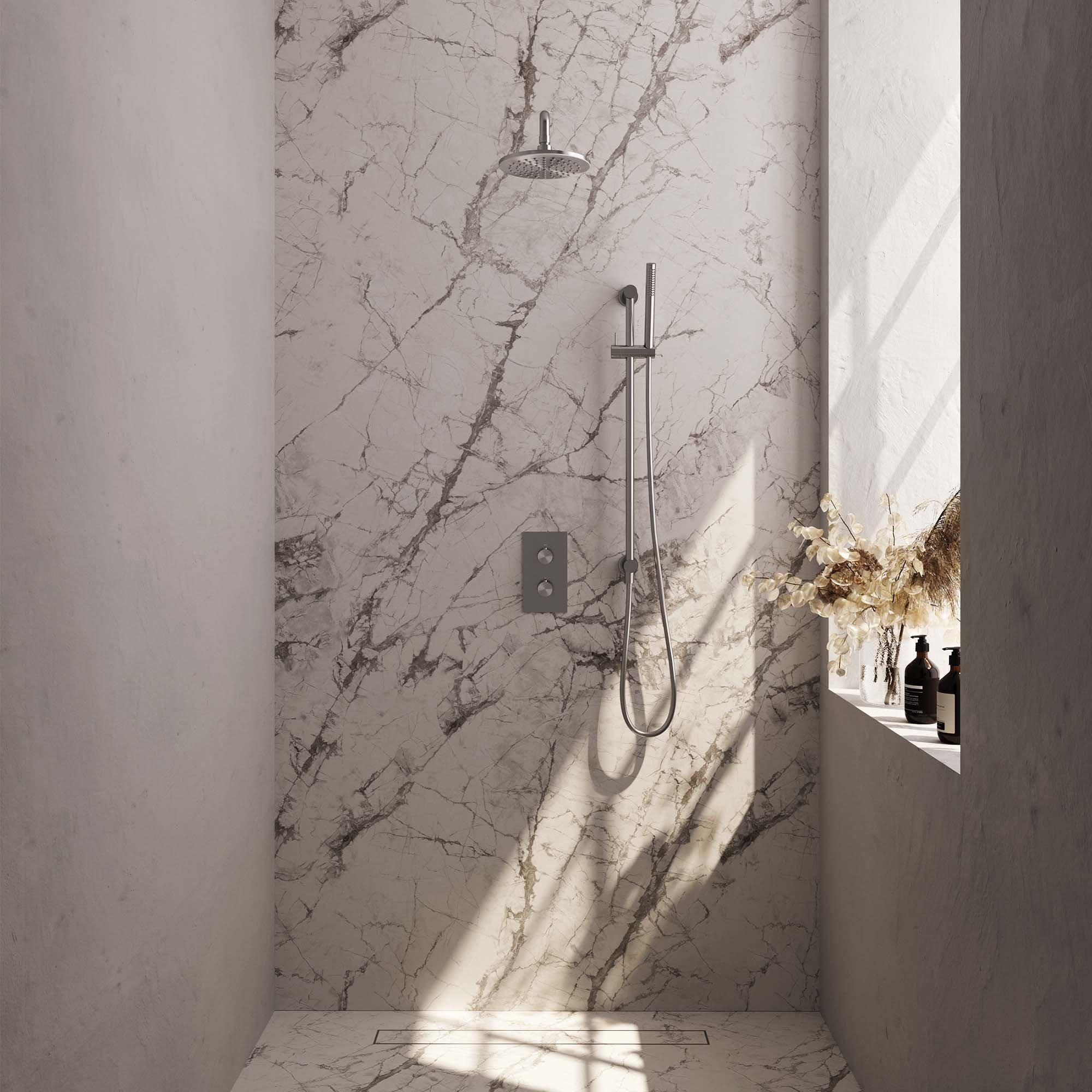 - Montage encastré pour un look épuré et minimaliste et un effet d’espace dans la douche