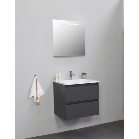 Basic Bella Ensemble de meuble salle de bain - 60x55x46cm - 1 lavabo - Acrylique - Blanc - 1 trou de robinet - Miroir mural avec éclairage - Panneau de particules Anthracite mat