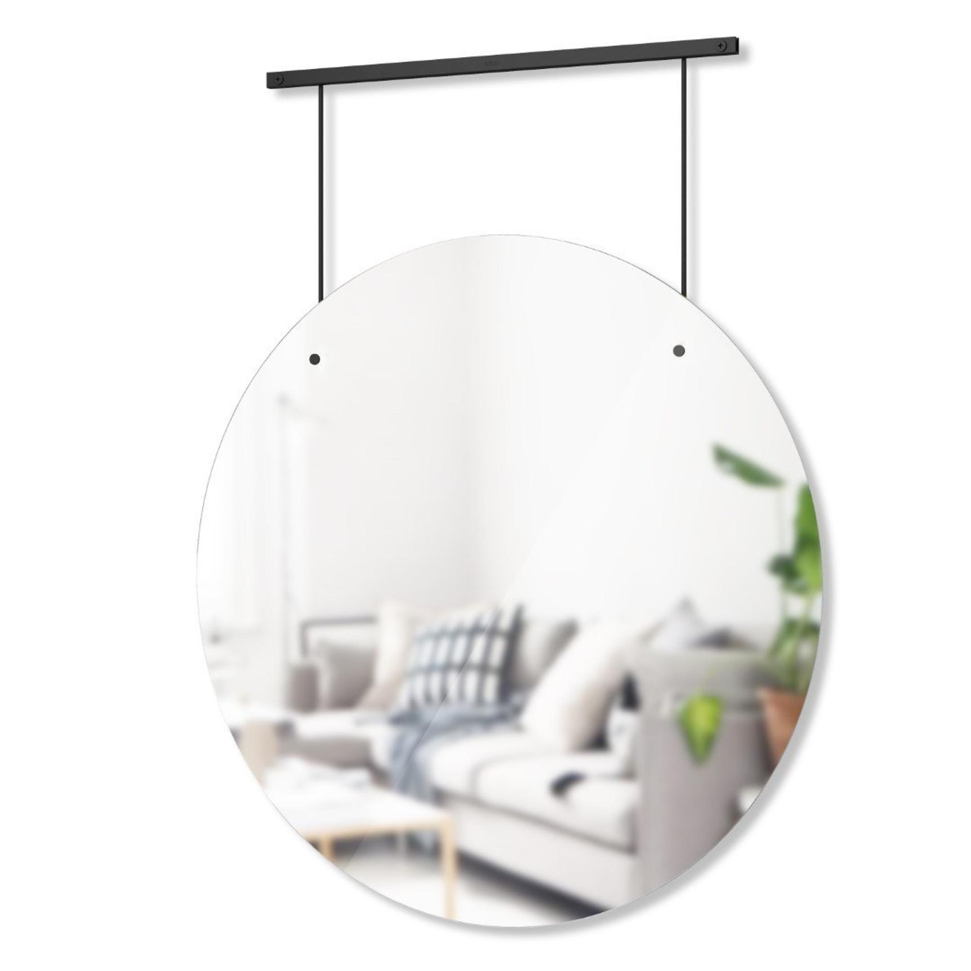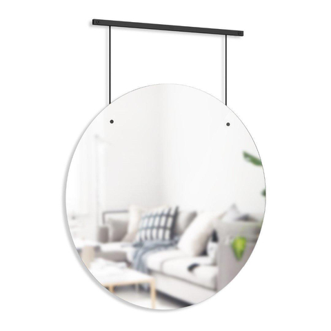- Miroir mural rond élégant avec barre de suspension noire moderne, parfait comme miroir et décoration murale.
