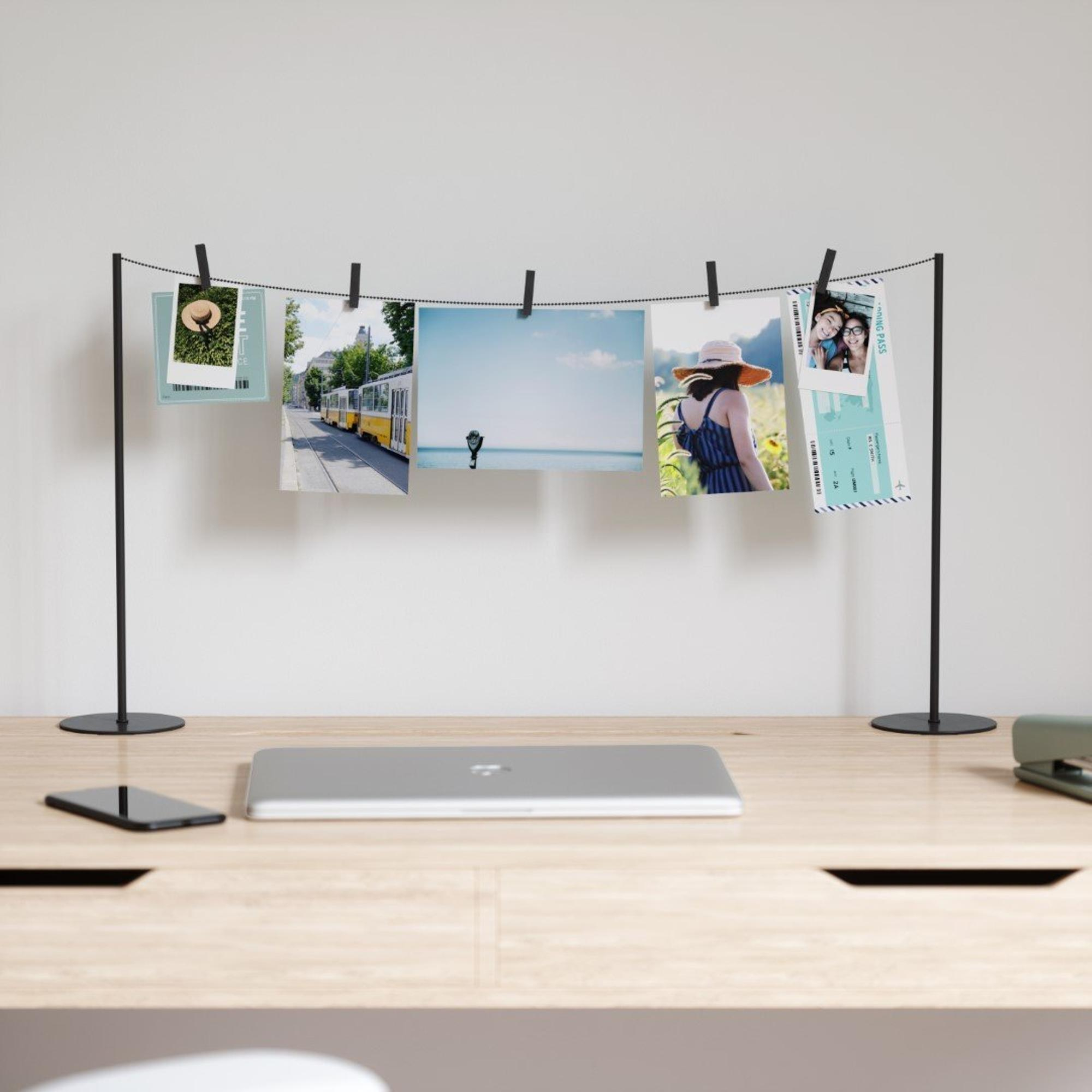 Vous serez étonné par la polyvalence de ce magnifique cadre photo Umbra Hangit. Que vous recherchiez une manière moderne de partager vos plus beaux souvenirs ou une façon créative de décorer votre espace, ce cadre photo est parfait pour vous. Avec 5 pinces, vous pouvez facilement accrocher vos photos, dessins ou notes préférés et les changer régulièrement pour maintenir un aspect frais. Le design épuré et la couleur noire s'intègrent parfaitement dans n'importe quel intérieur, que ce soit dans le salon, la chambre ou le bureau.Solide et Durable