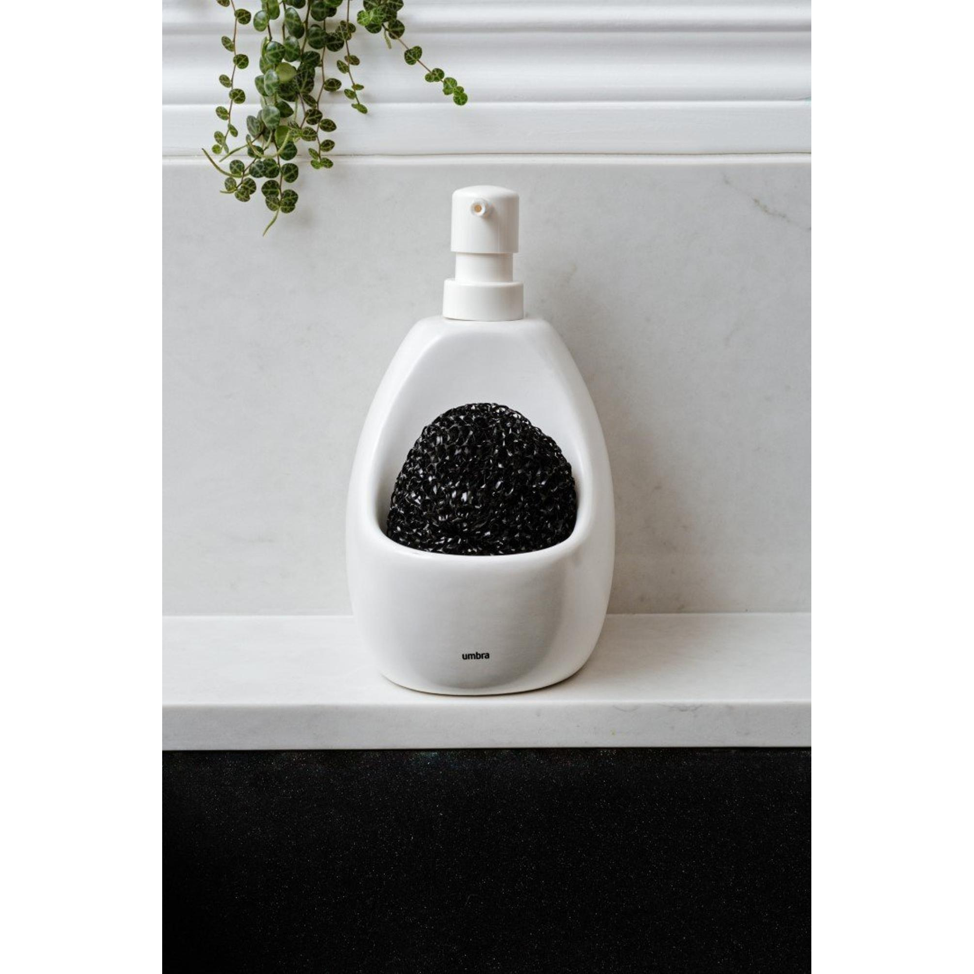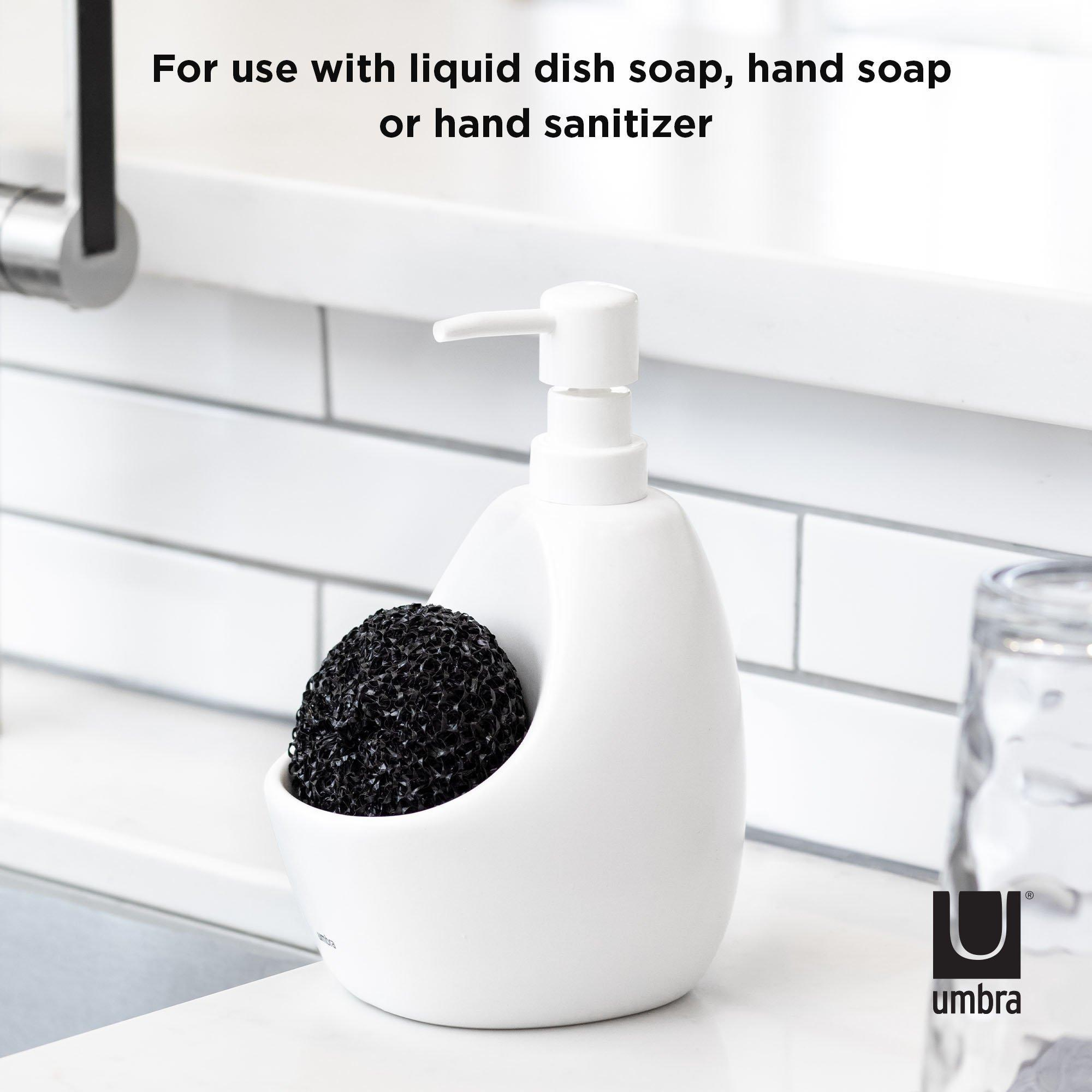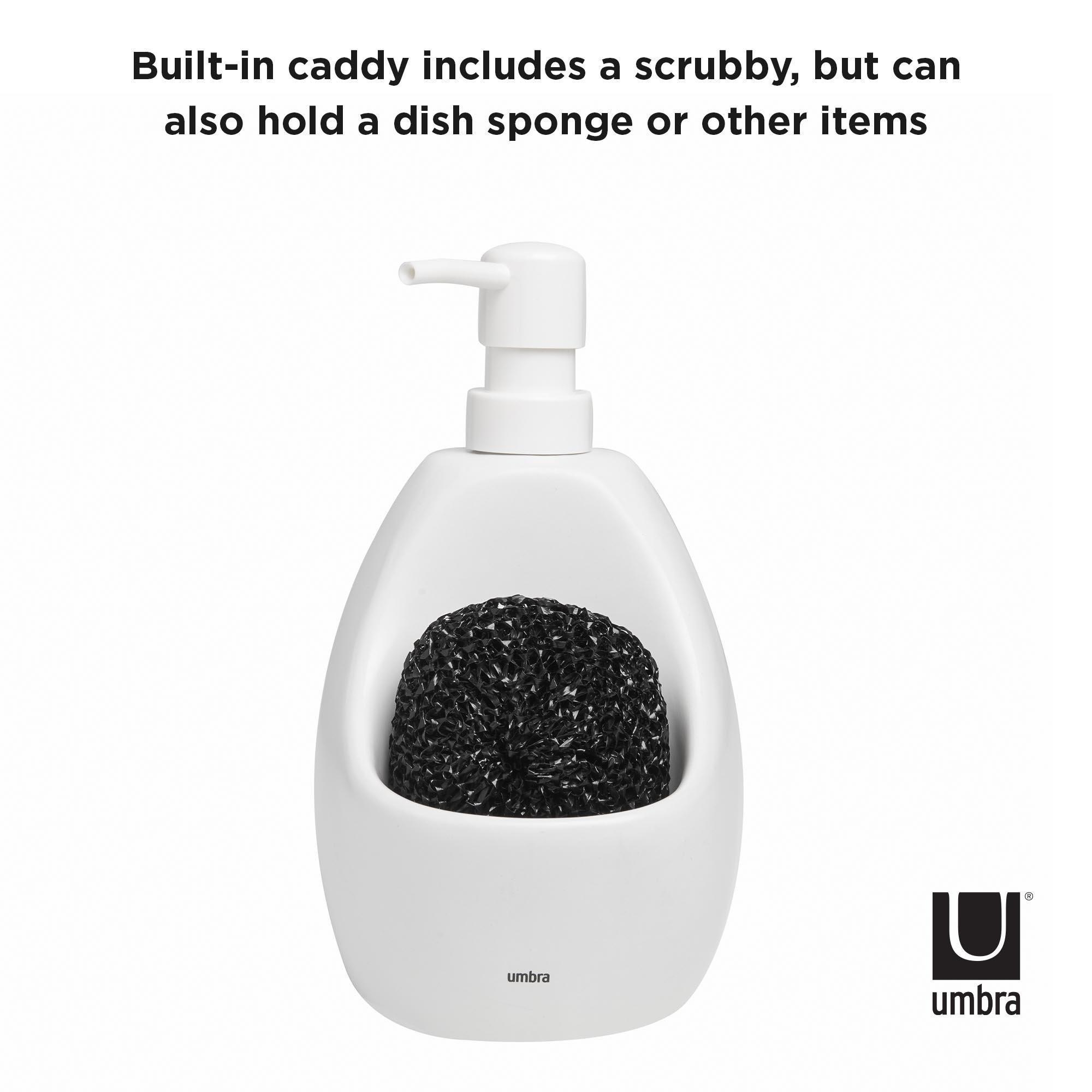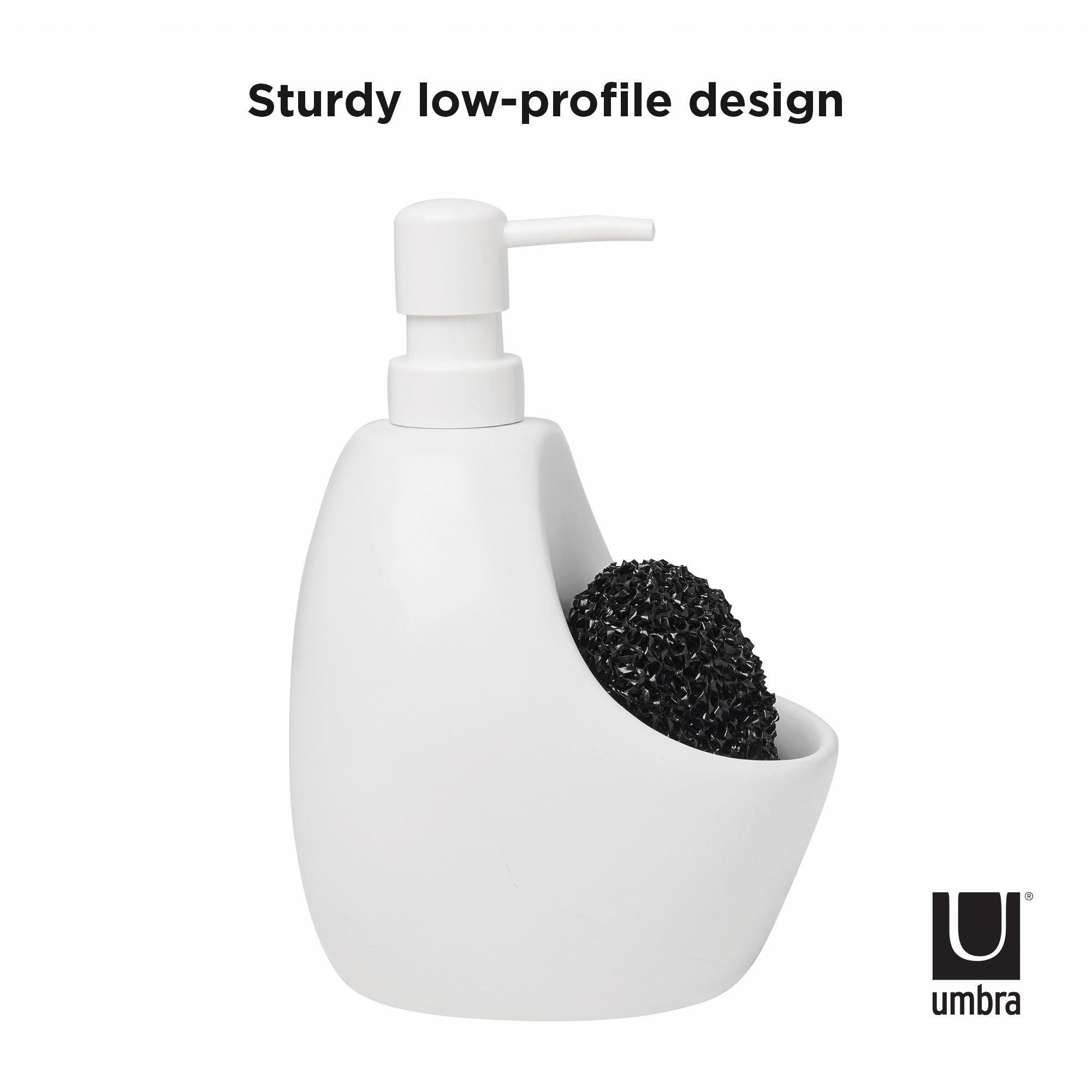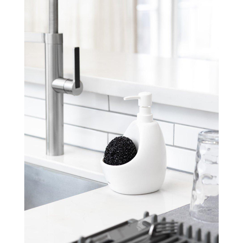 Une solution facile 2-en-1Le distributeur de savon Joey pour la cuisine est la solution idéale 2-en-1 pour le lavabo ; le support intégré permet de garder vos outils de cuisine préférés comme l'éponge à récurer (inclus) et l'éponge de cuisine bien en place et facilement accessibles.