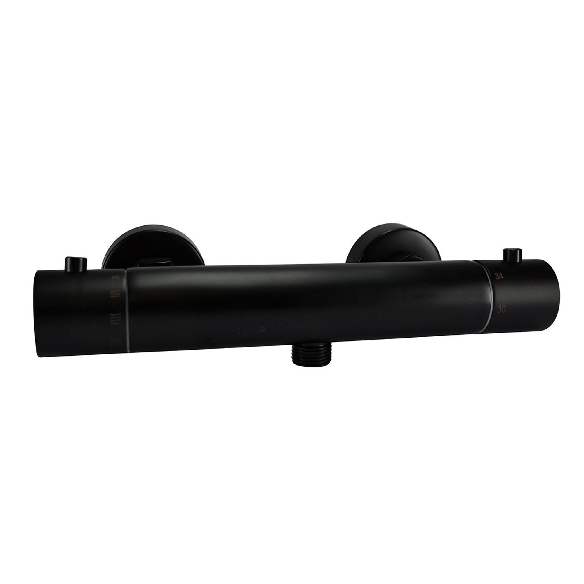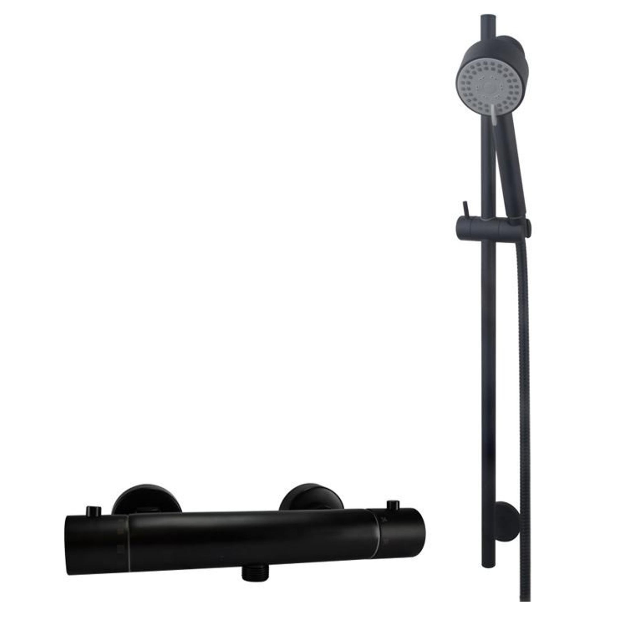 Wiesbaden Rio Mitigeur thermostatique de douche 15cm avec ensemble barre de douche Noir mat