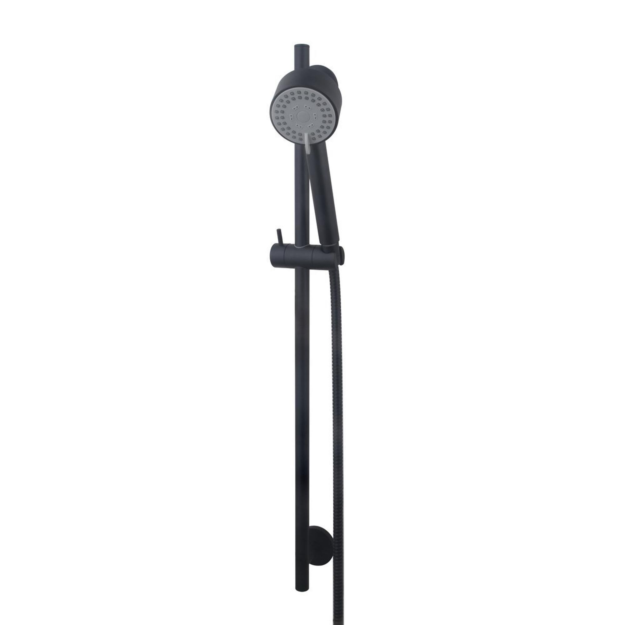Avec sa finition noire mate, cet ensemble est un véritable élément accroche-regard qui s'intègre parfaitement aux dernières tendances de la salle de bains. La robinetterie noire donne immédiatement à votre salle de bains un aspect robuste et luxueux et se combine parfaitement avec d'autres accessoires noirs ou avec des carreaux clairs pour un contraste saisissant. L'ensemble barre de douche présente un design fin avec un tube en laiton de 20 mm de diamètre et une longueur de 72 cm, ce qui constitue un ajout subtil mais remarquable à votre coin douche. Grâce à sa finition de haute qualité, le produit conserve son aspect élégant, à condition de faire attention lors de l'installation pour éviter les rayures.