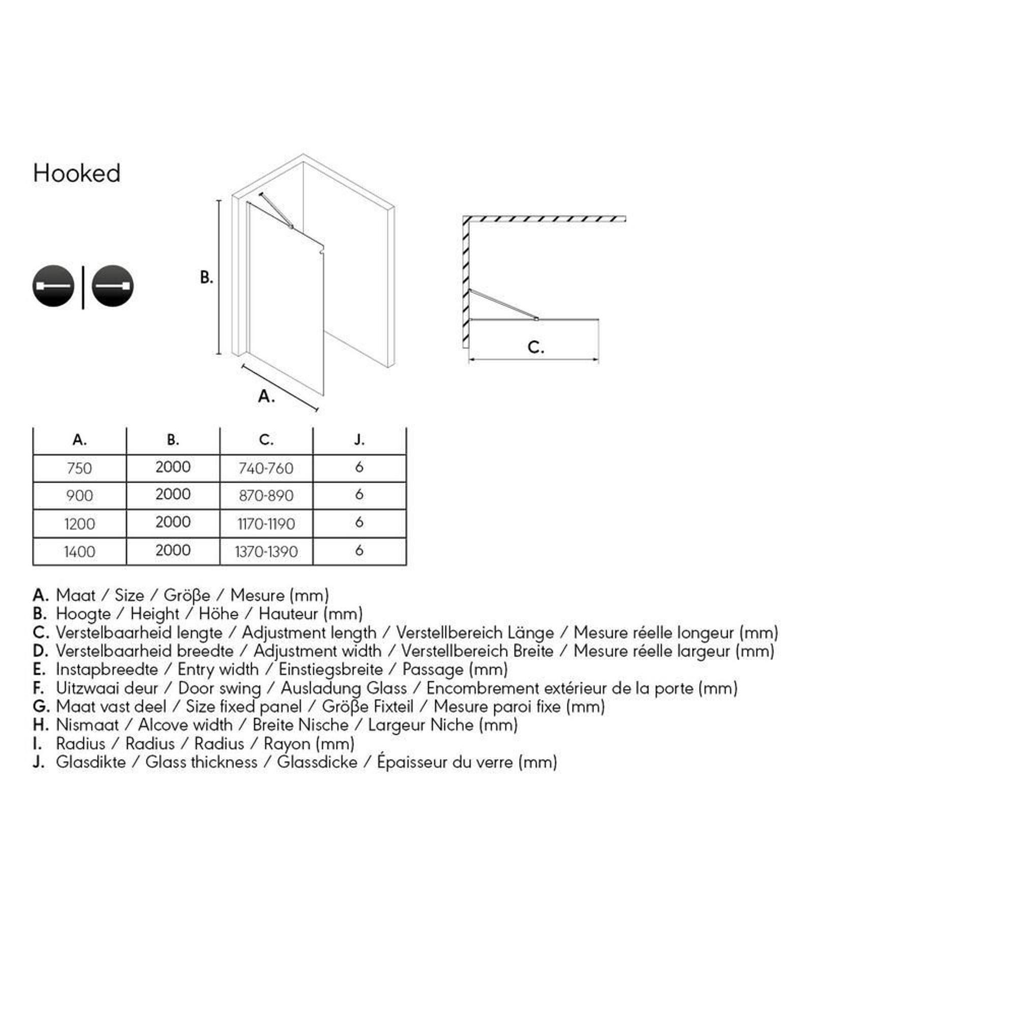 Sealskin Hooked paroi de douche à l'italienne 140x200cm verre de sécurité 6mm chrome