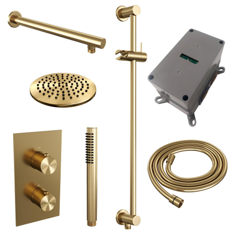 Brauer Gold Edition Ensemble de douche pluie encastré - douche principale 20cm - bouton lisse - douchette à main 1 fonction - barre de douche - PVD - or brossé