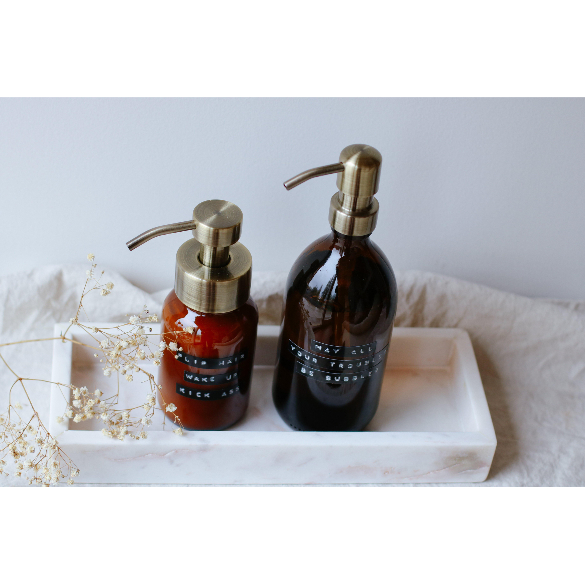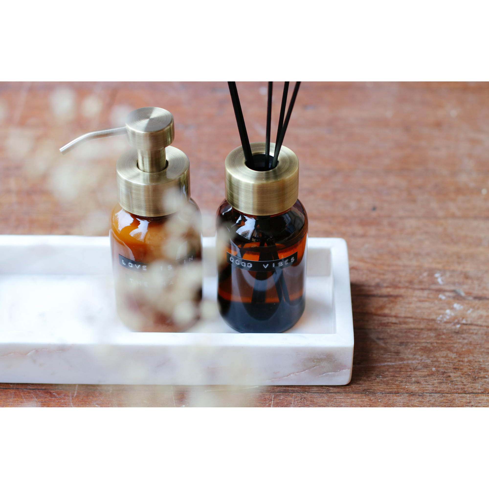 En plus de son beau design, ce plateau vous aide à apporter de la structure dans les pièces très utilisées. En regroupant vos flacons et accessoires sur le plateau, votre salle de bains paraît immédiatement plus ordonnée et vous évitez que les pots et les bouteilles ne traînent partout. Le rebord d’environ 3,5 cm maintient tout bien en place, même lorsque vous déplacez le plateau pour faire le ménage. Grâce au matériau en marbre robuste, le plateau reste bien stable, même si vous y placez plusieurs flacons, de 250 ml à 1 litre. Vous combinez ainsi vue d’ensemble et facilité d’utilisation avec une allure luxueuse.