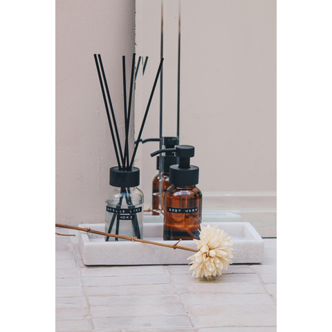 Avec ce plateau en marbre élégant, vous ajoutez en un cliniment du calme et du raffinement à votre salle de bains, vos toilettes ou votre cuisine. Le format allongé est idéal pour garder ensemble votre distributeur de savon préféré, votre savon pour les mains, votre lotion ou vos bâtonnets parfumés, afin que votre tablette, votre meuble sous-lavabo ou votre plan de travail paraisse rangé et stylé. Grâce au veinage subtil du marbre blanc, cet accessoire s’intègre sans effort dans des intérieurs modernes, minimalistes ou au style hôtel chic. Si vous cherchez une belle base pour vos flacons Wellmark ou d’autres accessoires de salle de bains élégants, il s’agit d’un choix judicieux, à la fois pratique et décoratif. Le plateau est lourd et solide au toucher, ce qui lui confère une allure luxueuse tout en restant agréable à utiliser au quotidien.