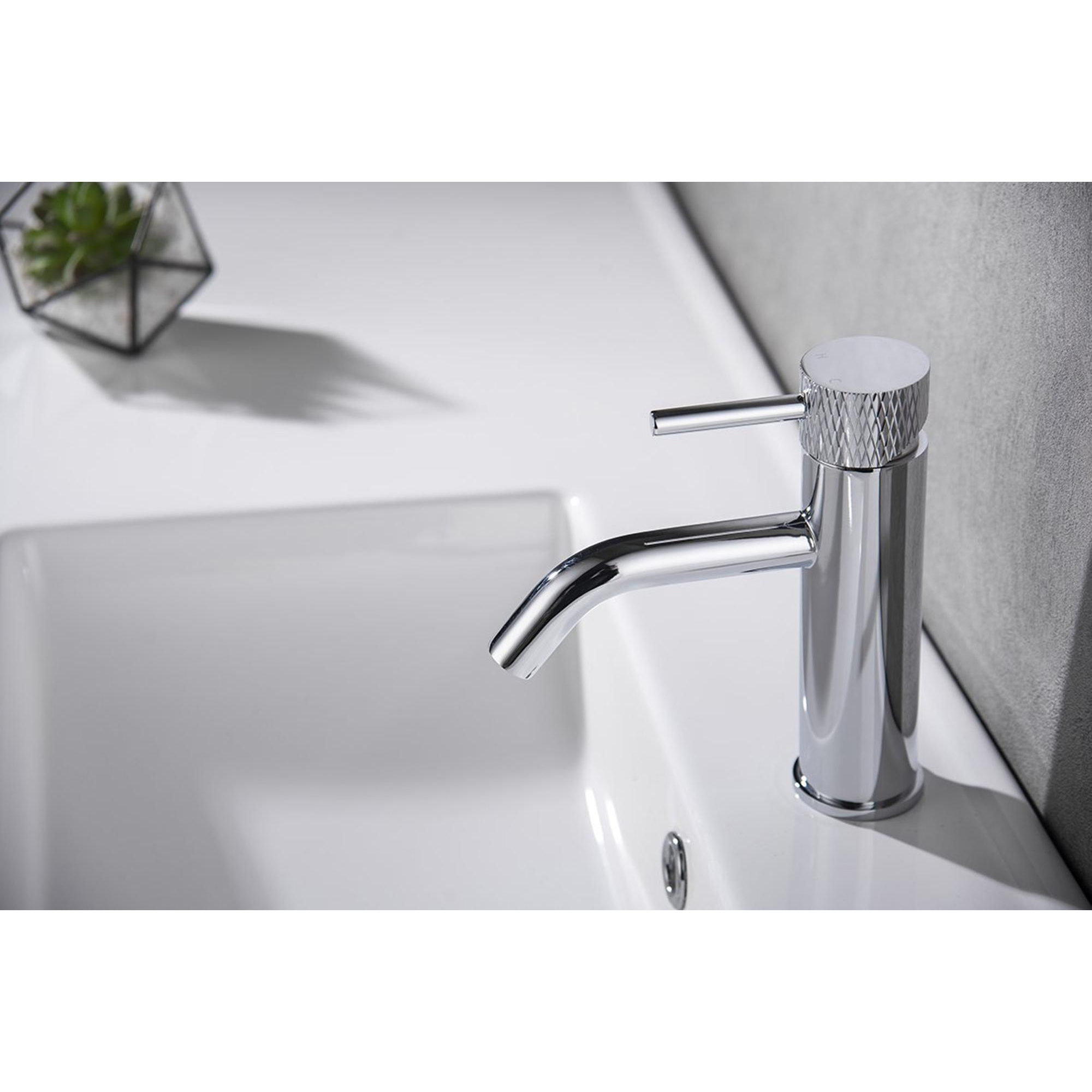 La couche de chrome confère au robinet un aspect brillant et moderne, facile à assortir avec d’autres accessoires de salle de bains. Grâce au revêtement, la surface est protégée contre les rayures et la décoloration, ce qui permet au robinet de conserver son apparence fraîche même en cas d’utilisation intensive. Le design intemporel avec un bec rond subtil fait de ce robinet un ajout élégant qui donne à votre lavabo un aspect luxueux sans être envahissant.