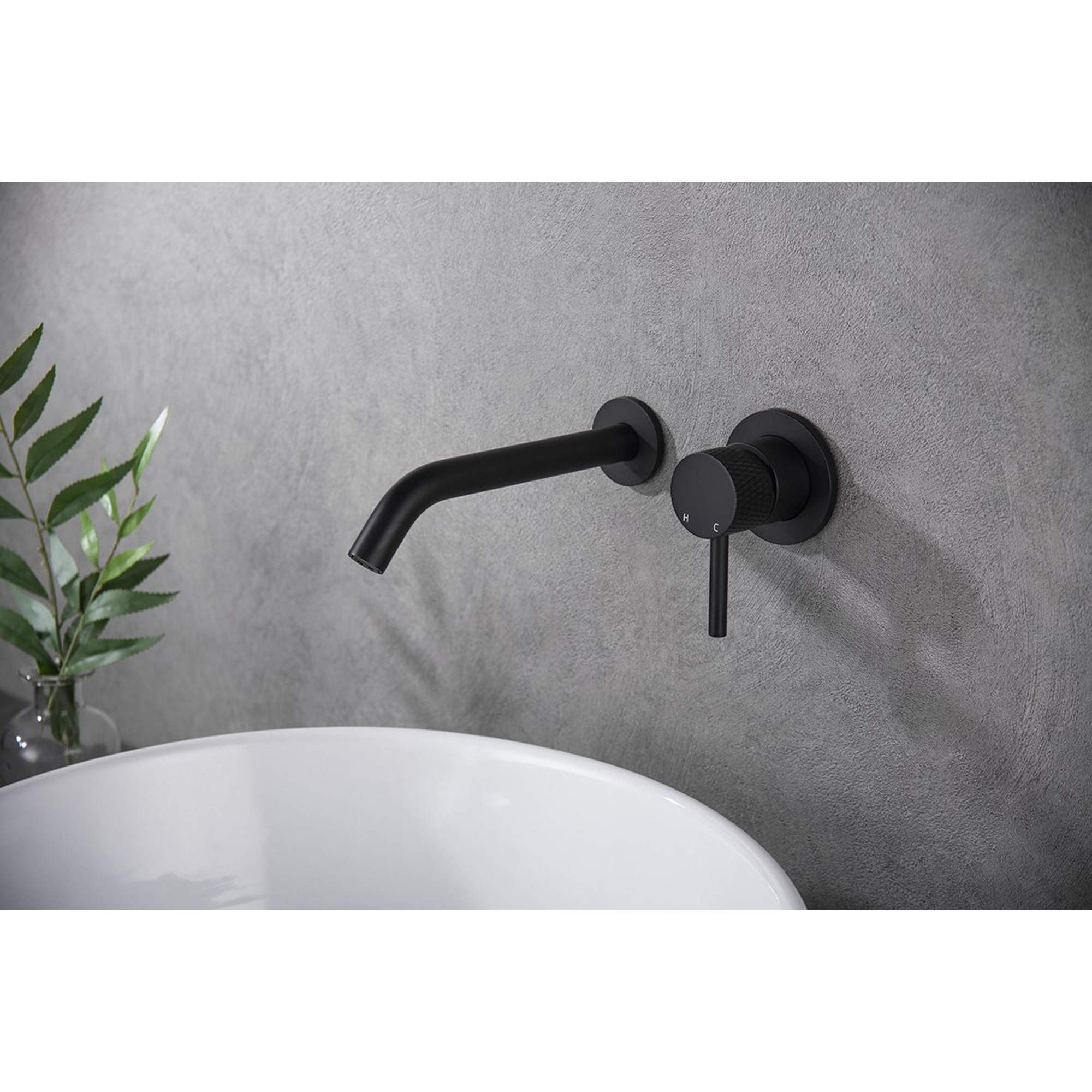 Wiesbaden Ribbd Mitigeur lavabo encastré à levier unique avec coldstart complet noir mat