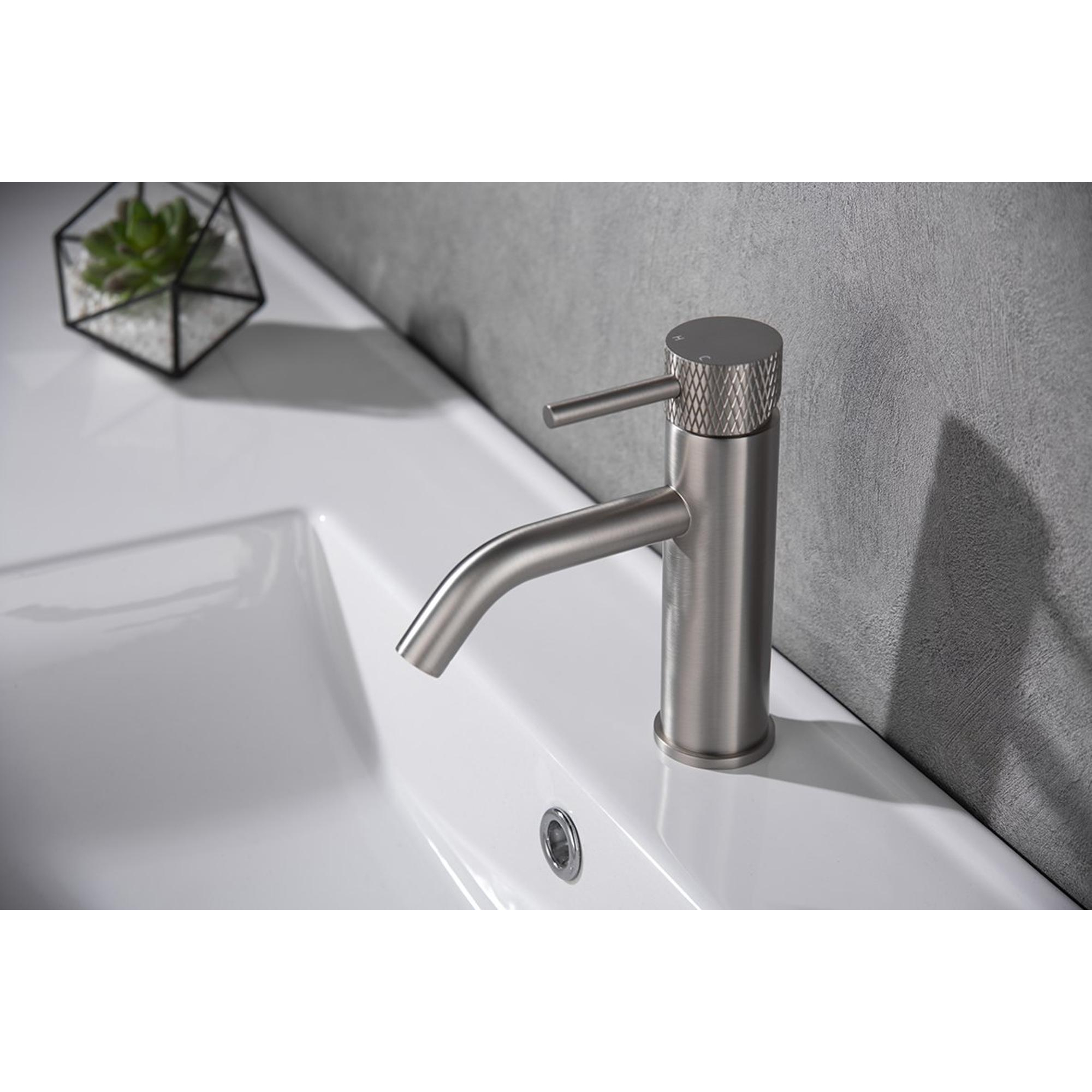 Ce robinet est fabriqué en laiton de haute qualité et fini avec un revêtement PVD acier brossé. Cela le rend non seulement robuste et résistant à la corrosion, mais aussi résistant aux rayures et à la décoloration. La couche PVD offre une protection supplémentaire qui donne au robinet une apparence luxueuse tout en prolongeant considérablement sa durée de vie. Ainsi, votre robinet restera comme neuf pendant des années, même en cas d’utilisation intensive. C’est un investissement durable qui offre une mise à niveau intemporelle à votre salle de bains.