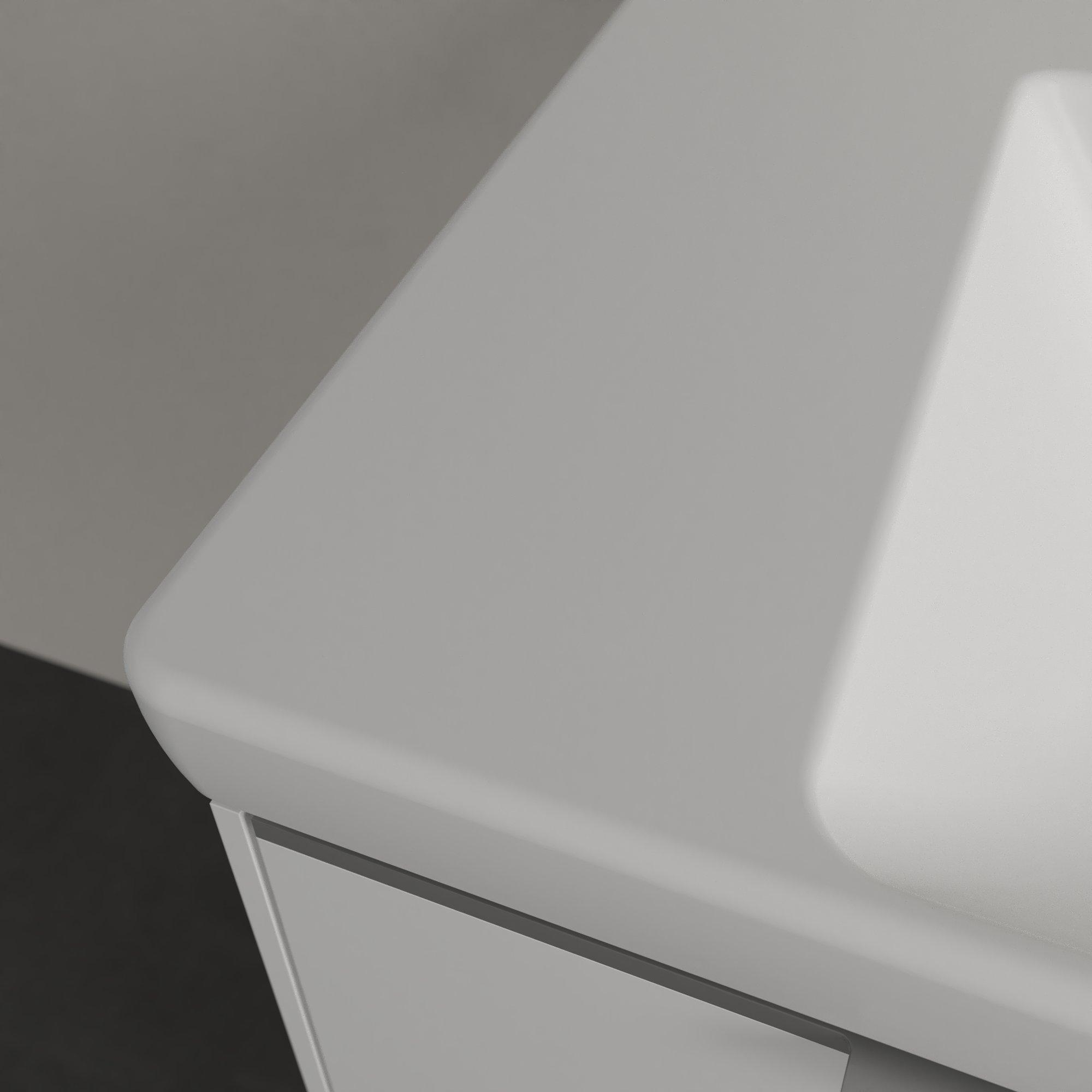Ce lavabo est fabriqué en TitanCeram de haute qualité, un matériau céramique innovant extrêmement solide et robuste. Les bords peuvent ainsi être façonnés de manière très fine et précise, tout en conservant une résistance exceptionnelle aux chocs et aux impacts. La couche de surface mate TitanGlaze est particulièrement résistante et contribue à l’aspect luxueux. Grâce au traitement CeramicPlus, la surface est antisalissure : les gouttes d’eau forment des perles et entraînent facilement les saletés vers la bonde. Le calcaire et les résidus de savon adhèrent moins rapidement, ce qui rend le nettoyage sensiblement plus facile et plus rapide. Cela est non seulement agréable pour l’entretien quotidien, mais permet également à votre lavabo de conserver pendant des années un aspect frais et comme neuf. Un choix donc durable, qui prouve sa valeur tant au niveau du matériau que de la facilité d’entretien.