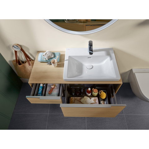 Ce lavabo pour meuble est conçu en prenant vos routines quotidiennes comme point de départ. La cuve profonde évite les éclaboussures gênantes sur le sol, même lorsque les enfants se lavent les mains avec enthousiasme ou lorsque vous vous rafraîchissez rapidement le visage. Le large banc de robinetterie offre suffisamment de place pour un distributeur de savon, un gobelet et autres accessoires de salle de bains, de sorte que tout ce dont vous avez souvent besoin reste à portée de main. Grâce au trop-plein intégré, vous n’avez pas à craindre les débordements involontaires. La forme rectangulaire permet en outre de combiner facilement le lavabo avec différents meubles de salle de bains et styles, du design épuré et moderne au minimalisme intemporel. Vous profitez ainsi chaque jour à la fois du confort et d’une vue d’ensemble.