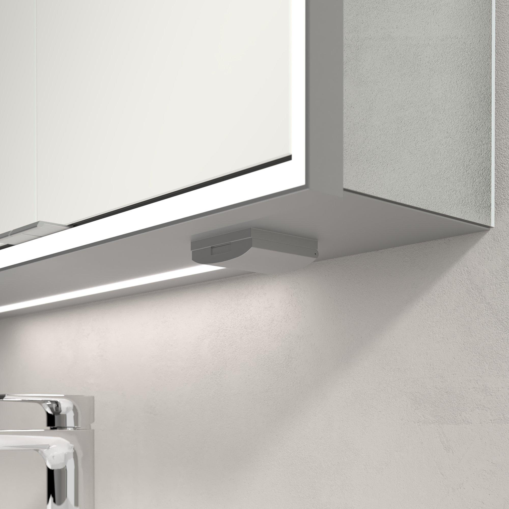 Le bandeau lumineux LED périphérique assure un éclairage uniforme de votre visage, sans ombres gênantes. Cela rend les routines quotidiennes telles que le rasage, le coiffage ou l'application du maquillage beaucoup plus précises et confortables. Avec l'interrupteur à capteur situé à l'extérieur, vous allumez et éteignez facilement l'éclairage, sans laisser de traces de doigts sur le miroir. De plus, vous pouvez faire varier l'intensité lumineuse en continu et régler la couleur de la lumière, d'un blanc lumière du jour éclatant à une lumière chaude et conviviale. Vous adaptez ainsi l'éclairage exactement au moment de la journée et à vos préférences personnelles, que vous souhaitiez vous réveiller en pleine forme ou au contraire terminer votre rituel du soir en toute détente.