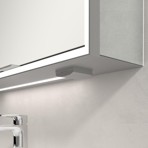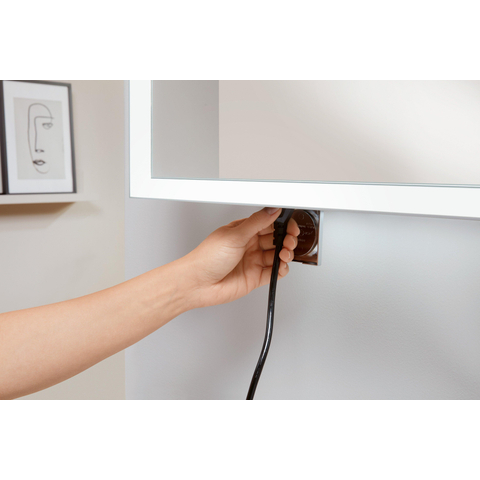 Le bandeau lumineux LED périphérique assure un éclairage uniforme de votre visage, sans ombres dures ni zones sombres gênantes. Idéal si vous souhaitez appliquer votre maquillage avec précision, vous raser ou simplement commencer la journée en toute fraîcheur. L’éclairage est réglable en continu et la couleur de lumière est ajustable du blanc lumière du jour au blanc chaud, ce qui vous permet de passer sans effort d’une lumière fonctionnelle le matin à une ambiance détendue le soir. Grâce à l’éclairage de lavabo intégré, le plan de lavabo est également illuminé directement, ce qui n’est pas seulement pratique, mais crée aussi une ambiance d’hôtel de luxe dans votre salle de bains. L’interrupteur à capteur situé en bas rend la commande encore plus confortable : il vous suffit de passer la main pour adapter la lumière à vos préférences.