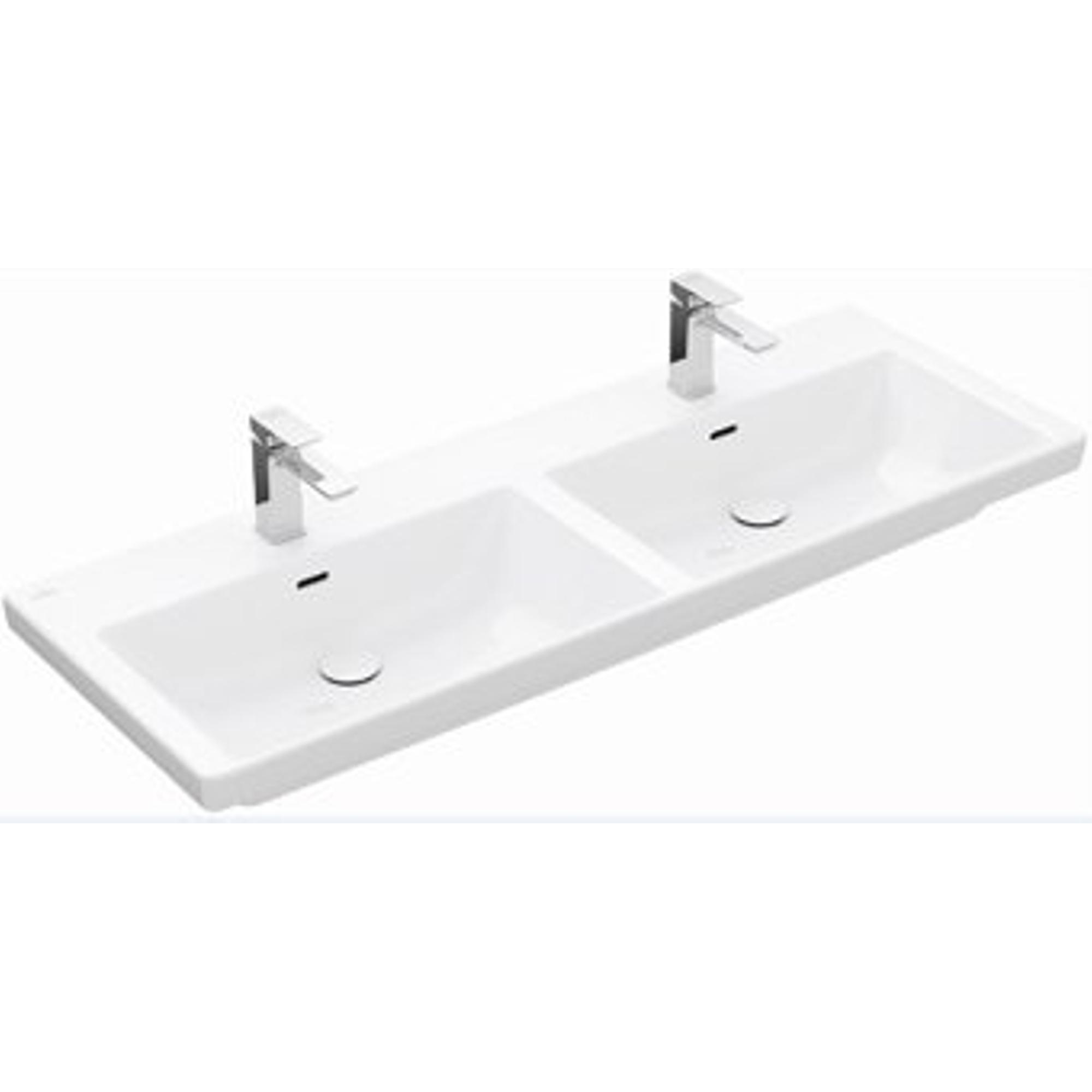 Villeroy & Boch Subway 3.0 lavabo à poser sur meuble - 130x47cm - 2 trous de robinetterie avec trop-plein blanc