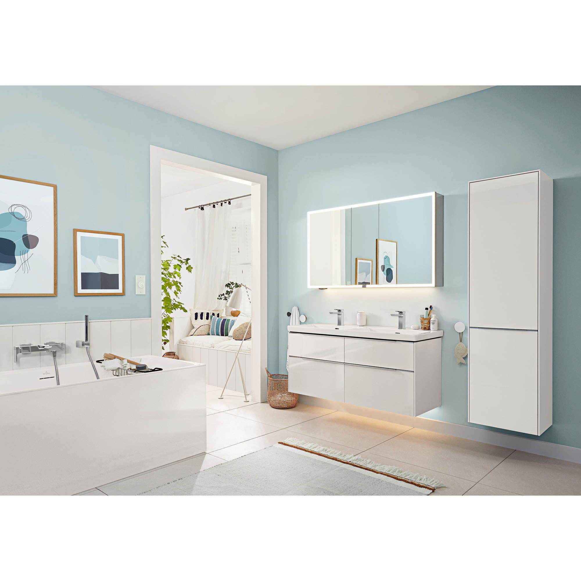 Avec une largeur de 130 cm et deux trous de robinetterie, ce double lavabo offre amplement d’espace pour utiliser simultanément la zone de lavage. Idéal si vous vivez à plusieurs et que vous souhaitez que vos routines du matin et du soir se déroulent sans encombre. La cuve profonde et fonctionnelle aide à limiter les éclaboussures, ce qui est non seulement agréable pour votre confort, mais permet également de garder le reste du meuble de salle de bains et le sol plus propres. Grâce au large rebord de robinetterie, vous pouvez facilement y disposer tous vos essentiels quotidiens, comme les distributeurs de savon, les brosses à dents et les produits cosmétiques. Vous gardez ainsi le plan du lavabo bien ordonné et votre salle de bains paraît plus calme et soignée.