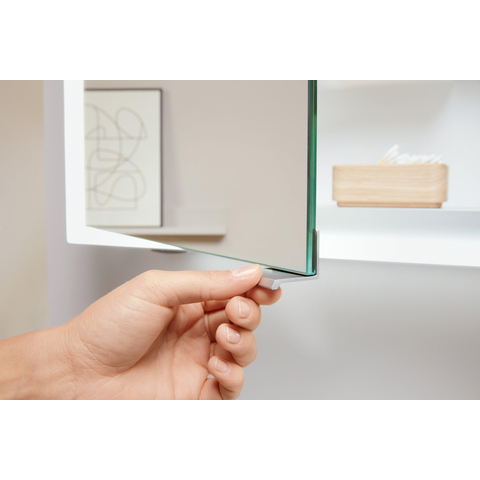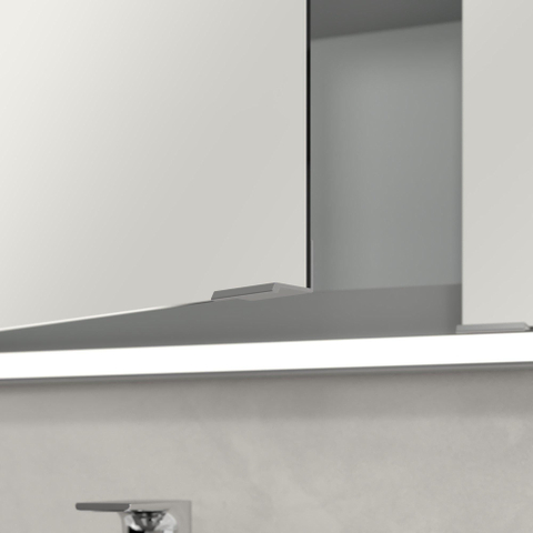 Cette armoire de toilette encastrée est conçue pour s’intégrer élégamment dans le mur, ce qui donne à votre salle de bains un aspect visuel plus calme et plus spacieux. La finition intérieure en aluminium de haute qualité offre une apparence moderne et luxueuse tout en étant légère et facile à nettoyer. Les trois portes sont dotées de poignées fines et filigranes qui permettent de les ouvrir confortablement sans laisser de traces de doigts sur la surface du miroir. Ce n’est pas seulement pratique, cela permet également à votre miroir de rester beau et sans traces plus longtemps. Grâce à la combinaison de lignes épurées, d’un éclairage intégré et d’un caractère neutre et intemporel, cette armoire se marie facilement avec une grande variété de styles : d’une salle de bains design moderne à un intérieur scandinave apaisant ou hotel-chic. Vous investissez ainsi dans une solution de miroir qui s’adapte sans difficulté à un futur relooking de votre salle de bains.