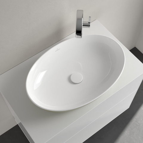 - Vasque à poser ovale et élégante qui confère immédiatement une allure luxueuse, digne d’un hôtel, à votre salle de bains.