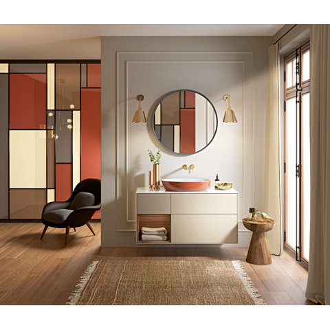 Grâce au matériau innovant TitanCeram, les bords sont remarquablement fins et les contours particulièrement raffinés, sans compromis sur la solidité. Le lavabo paraît ainsi léger et élégant, presque comme une porcelaine fine, mais il est en réalité suffisamment robuste pour une utilisation quotidienne intensive. Les formes précises et les lignes filigranes confèrent immédiatement à votre salle de bains une atmosphère d’hôtel haut de gamme, tout en vous faisant profiter des avantages pratiques de la céramique : résistance aux rayures, stabilité des couleurs et résistance à la chaleur et à l’eau. Comme le matériau conserve parfaitement sa forme nette, le lavabo s’ajuste joliment sur le plan et votre meuble bénéficie d’une finition soignée et haut de gamme.