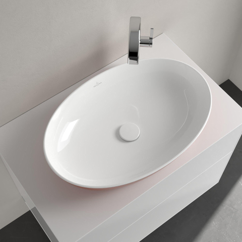 - Lavabo à poser ovale de 61x41 cm pour un look élégant et aéré sur le plan de toilette