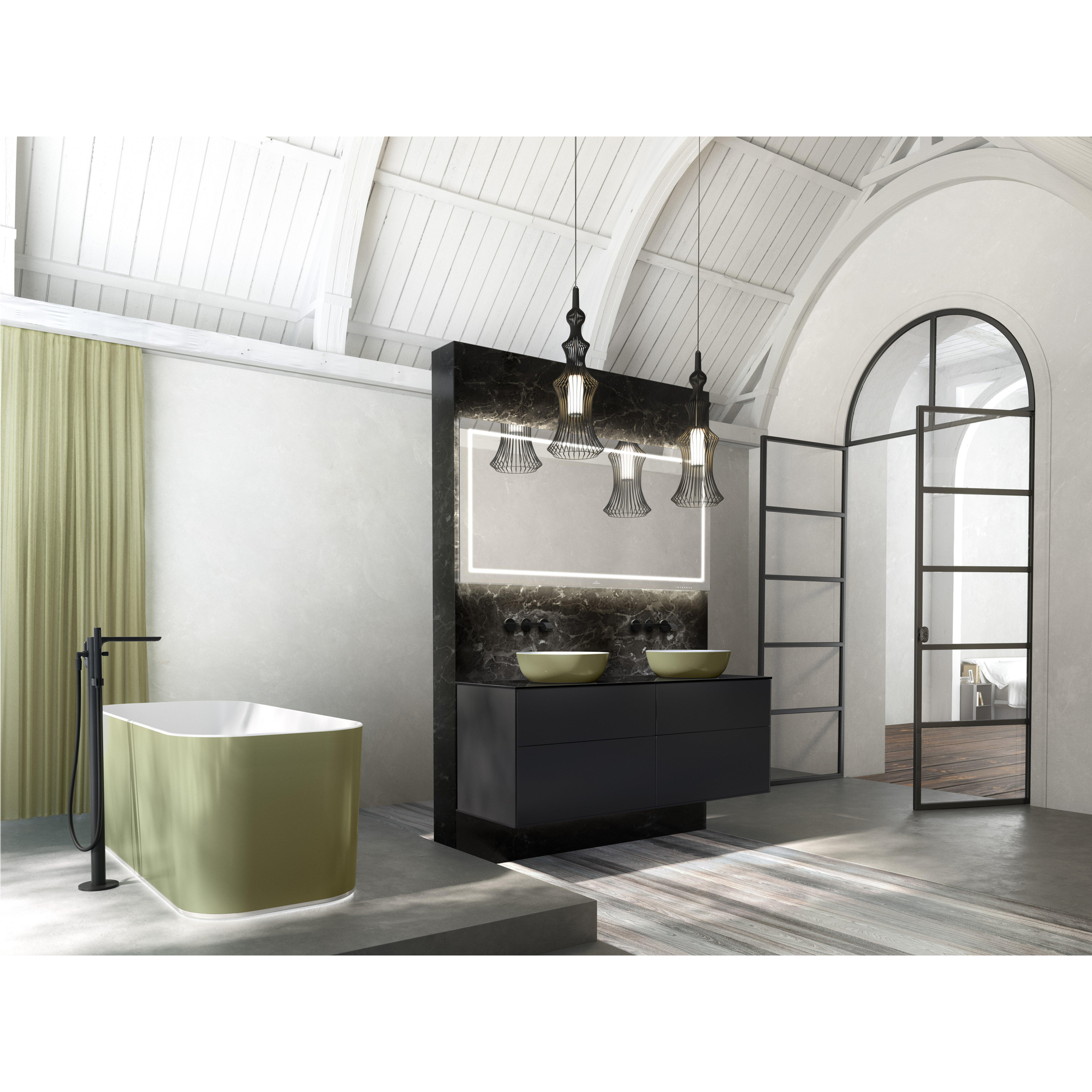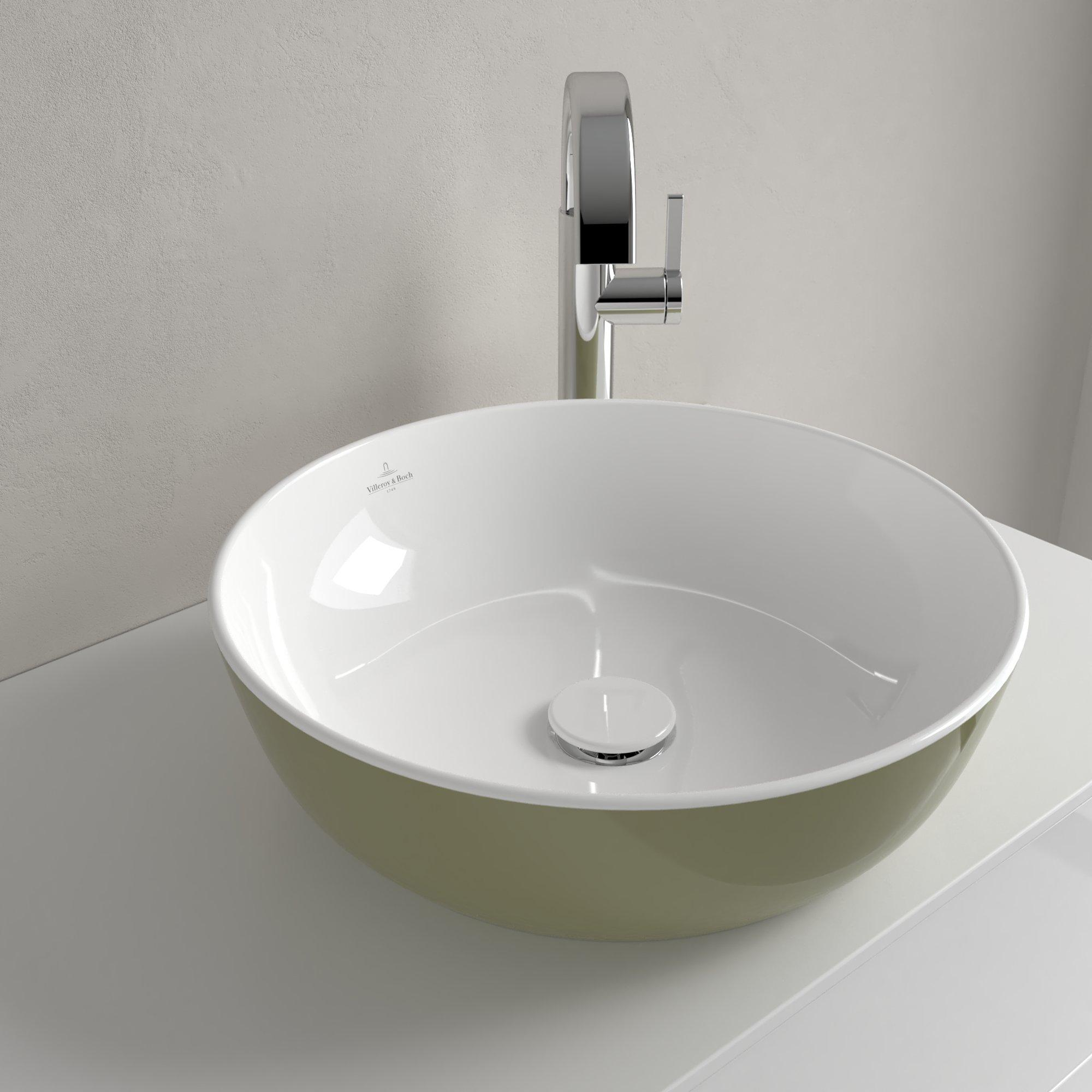 La combinaison d’une forme ronde épurée avec le look BiColour fait de cette vasque à poser un véritable statement de design. La face extérieure en sage green crée une atmosphère calme et naturelle qui se marie à merveille avec le bois, le marbre ou les carreaux clairs, tandis que l’intérieur blanc classique paraît intemporel et frais. Vous créez ainsi facilement contraste et profondeur dans votre salle de bains, sans que l’ensemble devienne chargé. La couleur est suffisamment subtile pour une ambiance spa apaisante, mais suffisamment distinctive pour donner du caractère à votre espace de toilette. Grâce au concept de couleur bien étudié d’une designer de premier plan, cette vasque s’accorde sans effort avec les dernières tendances de la salle de bains, de sorte que votre salle de bains conservera pendant de nombreuses années un aspect contemporain.