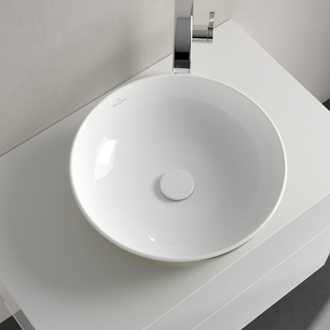 - Vasque ronde à poser de 43 cm, idéale pour une installation sur un plan vasque ou un meuble