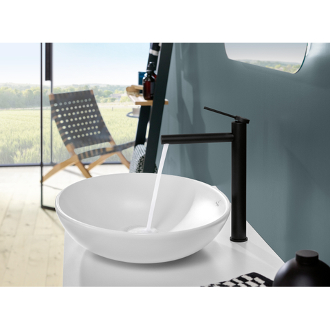 Le bassin profond permet à l’eau de rester bien dans la cuve, ce qui limite les éclaboussures sur le plan ou le sol. C’est idéal si vous souhaitez vous laver les cheveux au-dessus de la vasque ou lorsque les enfants utilisent la vasque avec enthousiasme. Le trop-plein intégré, à la forme allongée et épurée, empêche la cuve de déborder, tout en préservant un design résolument minimaliste. Comme cette vasque à poser est proposée sans trou de robinetterie, vous pouvez la combiner librement avec un mitigeur haut posé sur le plan ou un robinet mural, exactement adapté à l’agencement de votre salle de bains et à vos besoins ergonomiques. Vous composez ainsi une configuration qui n’est pas seulement esthétique, mais aussi confortable à utiliser au quotidien.
