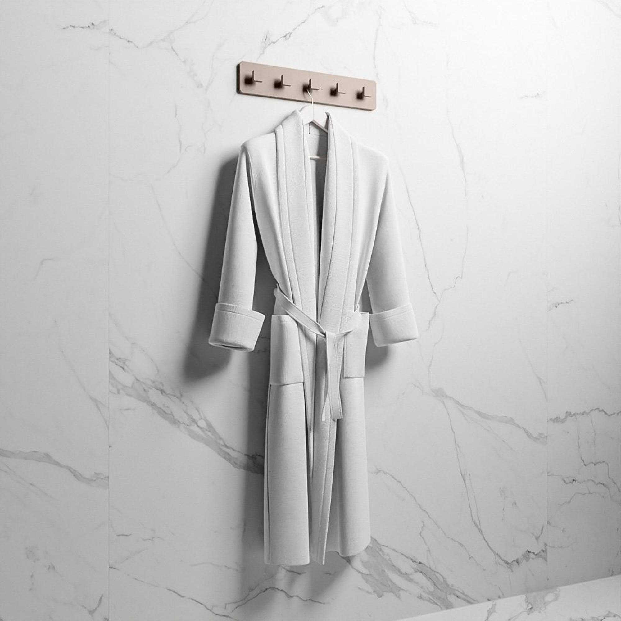 Avec cinq crochets, vous disposez d’un endroit clair et organisé pour vos serviettes, serviettes invité et peignoirs. La fixation dissimulée fait en sorte qu’aucune vis ni point de montage ne soit visible : l’ensemble présente un aspect sobre et soigné sur le mur. Grâce au montage en applique, l’installation se fait souvent rapidement, idéal si vous souhaitez plus de confort et de fonctionnalité dans votre salle de bains sans gros travaux. Grâce à la construction robuste en Solid Surface, l’ensemble offre une sensation de solidité et reste fiable en termes de forme et de couleur, même en cas d’usage quotidien.