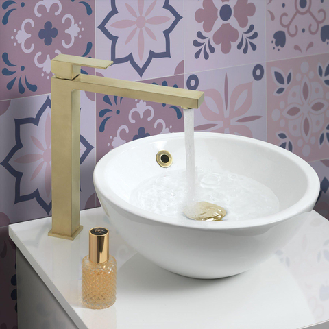 La version surélevée rend ce mitigeur de lavabo particulièrement adapté aux lavabos modernes à poser et aux vasques hautes sur un plan de lavabo. Grâce à la hauteur généreuse du robinet, vous pouvez placer le robinet derrière ou à côté de la vasque, sans que le bec ne soit trop bas ou peu pratique. Cela offre non seulement plus de confort pour se laver les mains ou le visage, mais évite également les éclaboussures inutiles autour du lavabo. La forme élégante et élancée s’accorde parfaitement avec les salles de bains épurées et minimalistes, mais constitue également un contraste élégant dans un espace plus classique ou industriel. Vous donnez ainsi immédiatement à votre meuble de salle de bains une apparence plus luxueuse, sans devoir rénover entièrement la salle de bains.Laiton brossé : chaleureux, luxueux et facile à assortir