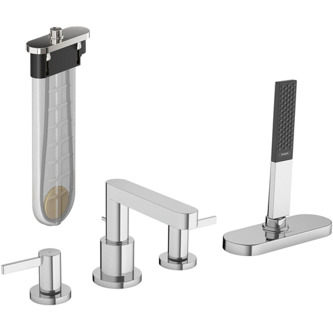 Transformez votre salle de bains avec ce mitigeur de bord de baignoire moderne à 4 trous qui non seulement est magnifique, mais excelle également en facilité d'utilisation et innovation. Le design épuré et géométrique donne à votre bord de baignoire une apparence élégante, tandis que la commande intelligente vous offre un contrôle sans effort du débit et de la température de l'eau. Grâce à la boîte à flexible intégrée, la douchette disparaît proprement de la vue lorsque vous ne l'utilisez pas, ce qui garantit un ensemble ordonné et stylé. Avec ce robinet, vous profitez d'une expérience de douche apaisante grâce au jet doux PowderRain, qui enveloppe votre corps de fines gouttes d'eau. De plus, l'entretien est simple et rapide grâce aux picots en silicone QuickClean pratiques. Ce produit combine esthétique et fonctionnalité et vous offre des années de plaisir de bain fiable dans un design intemporel.