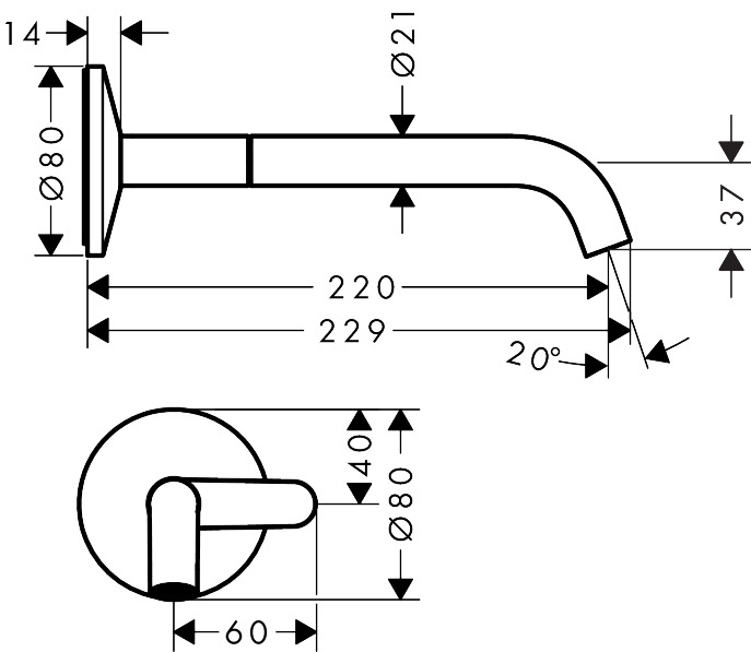 AXOR One Mitigeur lavabo encastré dans le mur Select avec bec déverseur 220 mm