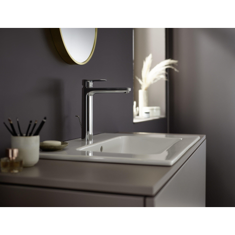 Avec une zone de confort (ComfortZone) de 100 mm et une hauteur de bec de 88 mm, ce robinet offre suffisamment d'espace pour laver confortablement vos mains ou utiliser un lavabo. Le levier unique permet de régler facilement et intuitivement la température et le débit de l'eau. De plus, la bonde métallique assure une évacuation soignée que vous contrôlez d'une seule main. Tout cela rend le robinet non seulement beau à voir, mais aussi particulièrement convivial au quotidien.