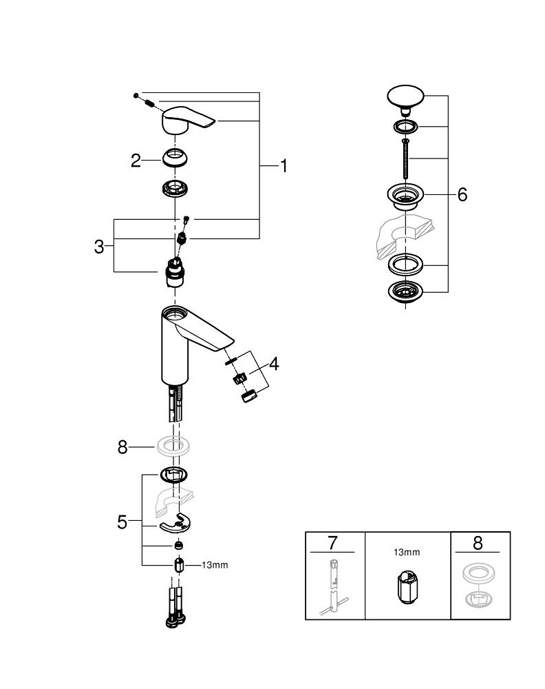 GROHE Eurosmart ensemble de robinet économique m-size avec bonde pop-up chrome