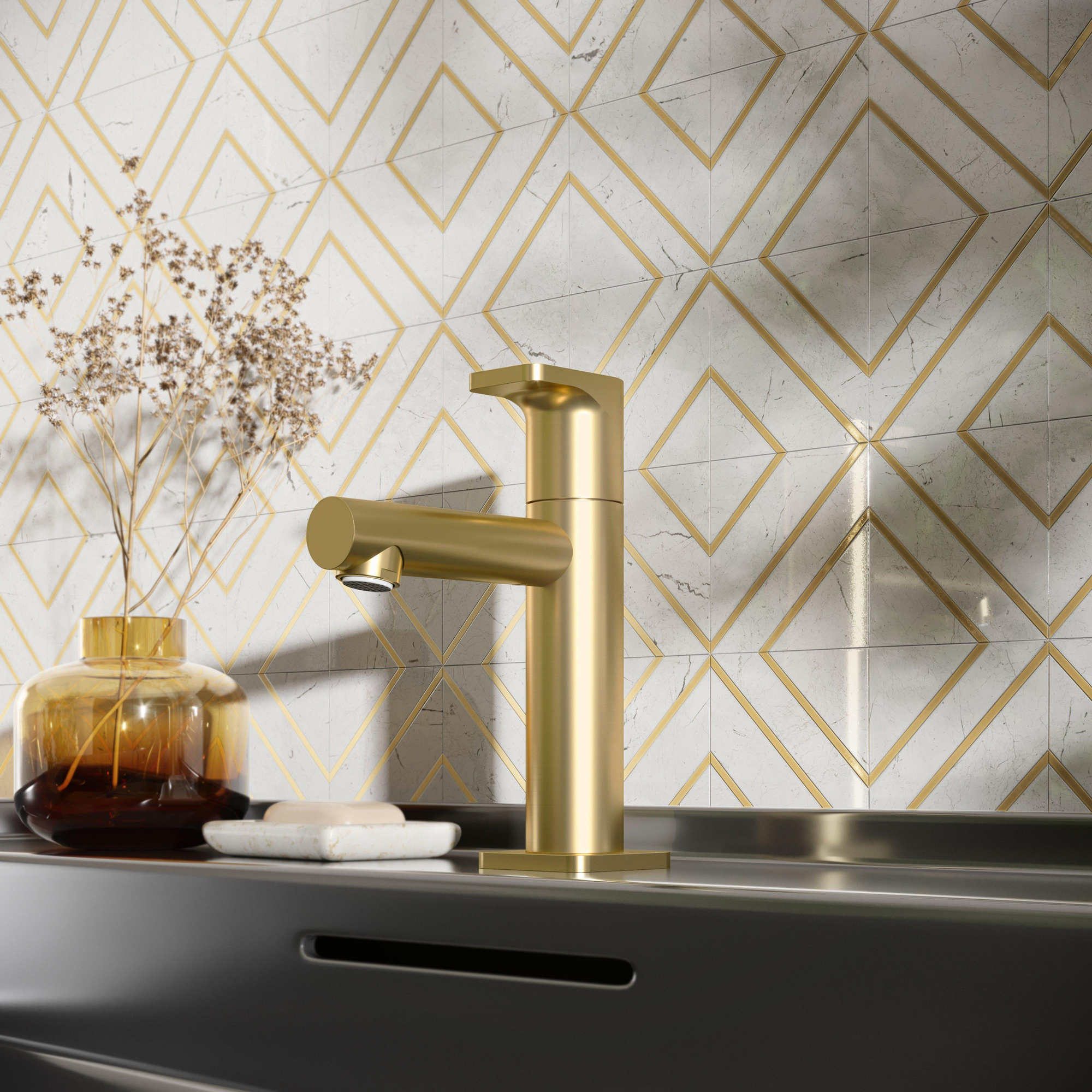 La finition subtile en laiton brossé confère à ce robinet une élégance intemporelle qui attire immédiatement l'attention. Le design fin et rectiligne ajoute une touche raffinée à chaque salle de bains, sans dominer l'espace. Grâce à cette apparence élégante, votre lavabo paraît immédiatement plus luxueux, ce qui contribue à une ambiance agréable et soignée. De plus, grâce au matériau de haute qualité, le robinet est facile à nettoyer, ce qui permet de conserver durablement son aspect élégant.